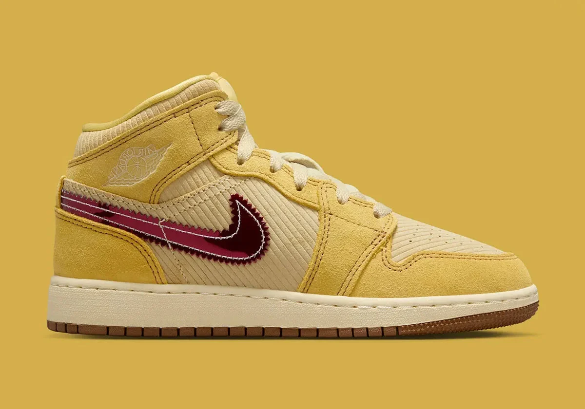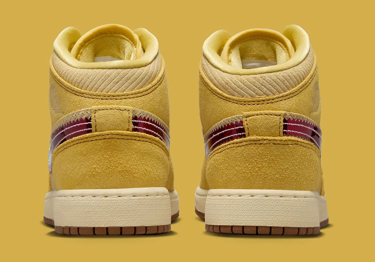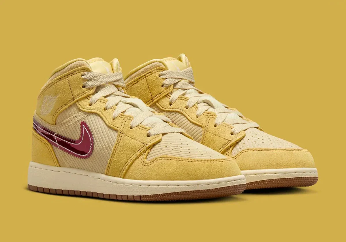 La Jordan 1 Mid SE French Fries (GS) apporte une touche fun et délicieusement décalée à la silhouette emblématique, pensée ici pour les jeunes amateurs de sneakers au style affirmé. La tige associe un cuir blanc lisse à des empiècements en jaune “French Fries” éclatant, une teinte chaleureuse qui rappelle instantanément le thème gourmand de cette édition spéciale. Des accents rouges vifs évoquent subtilement l’univers des frites and ketchup, notamment sur la languette, le col et les détails du branding, créant une palette vive et joyeuse. Le logo Wings embossé conserve l’ADN basketball de la ligne tandis que les motifs graphiques inspirés du snack s’intègrent avec humour sans compromettre l’allure premium du modèle. La construction Mid assure un maintien confortable pour un usage quotidien et l’amorti Air encapsulé garantit une foulée souple et agréable. L’ensemble compose une sneaker ludique, colorée et parfaitement équilibrée, idéale pour exprimer sa personnalité tout en profitant du confort Jordan.