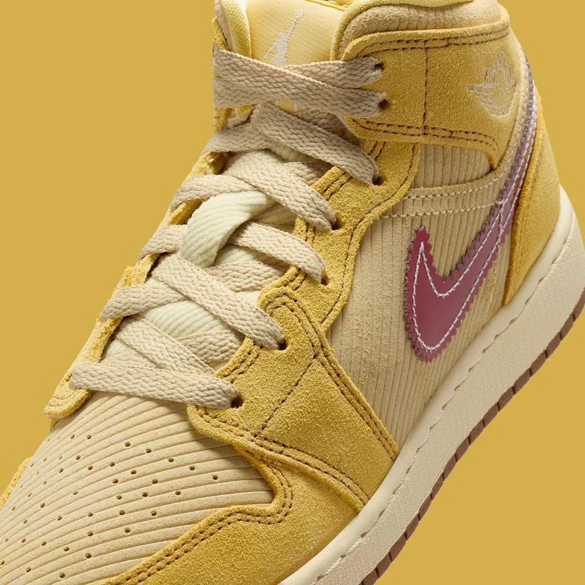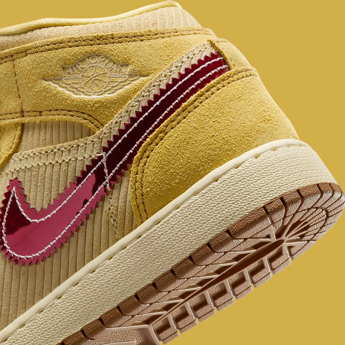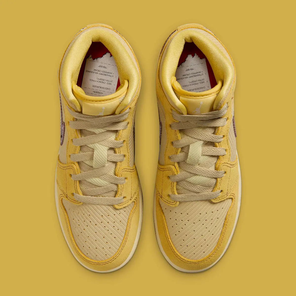 La Jordan 1 Mid SE French Fries (GS) apporte une touche fun et délicieusement décalée à la silhouette emblématique, pensée ici pour les jeunes amateurs de sneakers au style affirmé. La tige associe un cuir blanc lisse à des empiècements en jaune “French Fries” éclatant, une teinte chaleureuse qui rappelle instantanément le thème gourmand de cette édition spéciale. Des accents rouges vifs évoquent subtilement l’univers des frites and ketchup, notamment sur la languette, le col et les détails du branding, créant une palette vive et joyeuse. Le logo Wings embossé conserve l’ADN basketball de la ligne tandis que les motifs graphiques inspirés du snack s’intègrent avec humour sans compromettre l’allure premium du modèle. La construction Mid assure un maintien confortable pour un usage quotidien et l’amorti Air encapsulé garantit une foulée souple et agréable. L’ensemble compose une sneaker ludique, colorée et parfaitement équilibrée, idéale pour exprimer sa personnalité tout en profitant du confort Jordan.