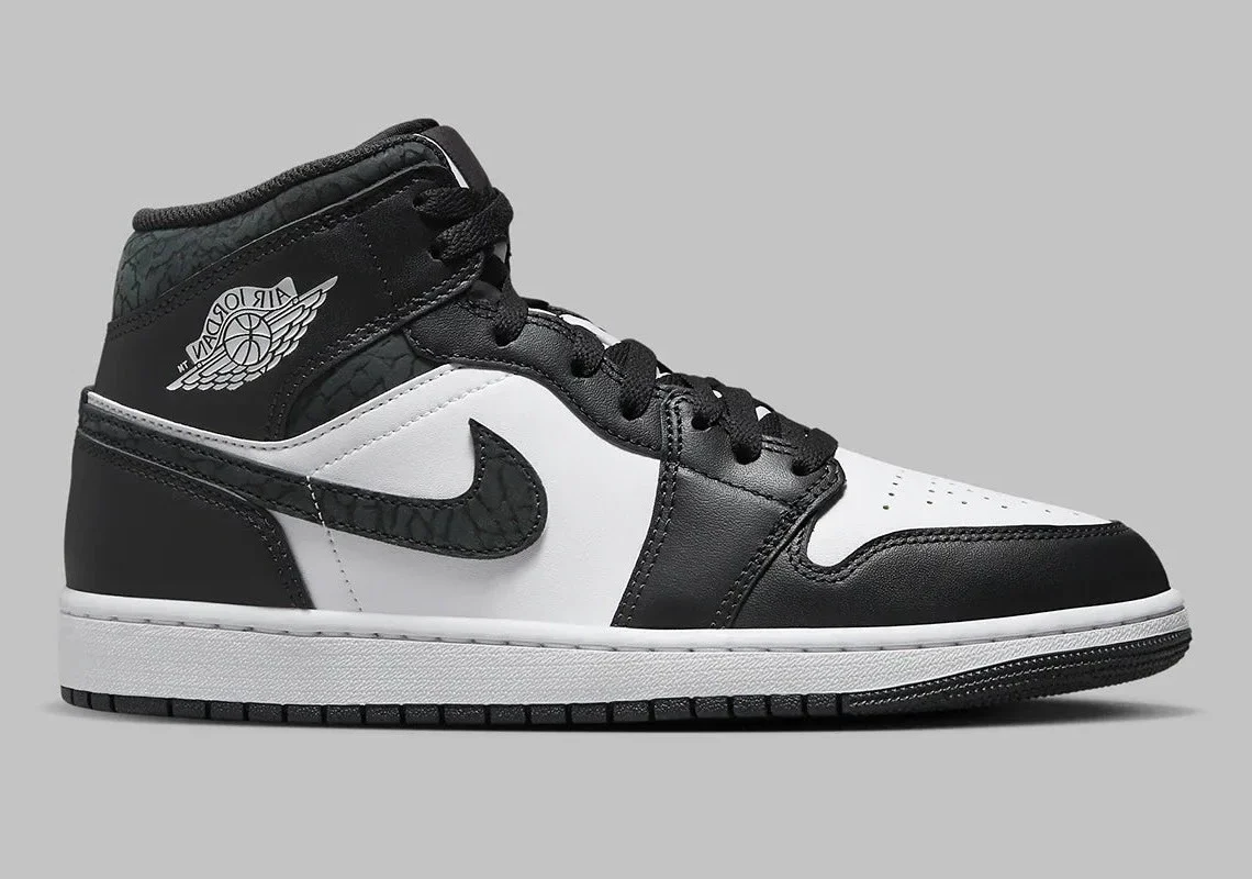 Avant l’automne, la silhouette est apparue dans un schéma de couleurs « White« , « Black » et « Off-Noir« . À première vue, la paire ressemble à la très populaire Nike Dunk High « Panda », mais une inspection plus poussée révèle un imprimé éléphant transplanté de la Air Jordan 3 sur les swooshes du profil et les semelles de la cheville. La mid-top est la dernière version de la Air Jordan originale à recevoir le motif texturé, poursuivant ainsi la tendance de la marque à l’autoréférence. Les logos « Wings » sur le côté de la cheville restent simples, tout comme la marque Jumpman sur la languette. Sous le pied, des semelles éprouvées complètent le schéma de couleurs discret avec une finition bicolore simple.