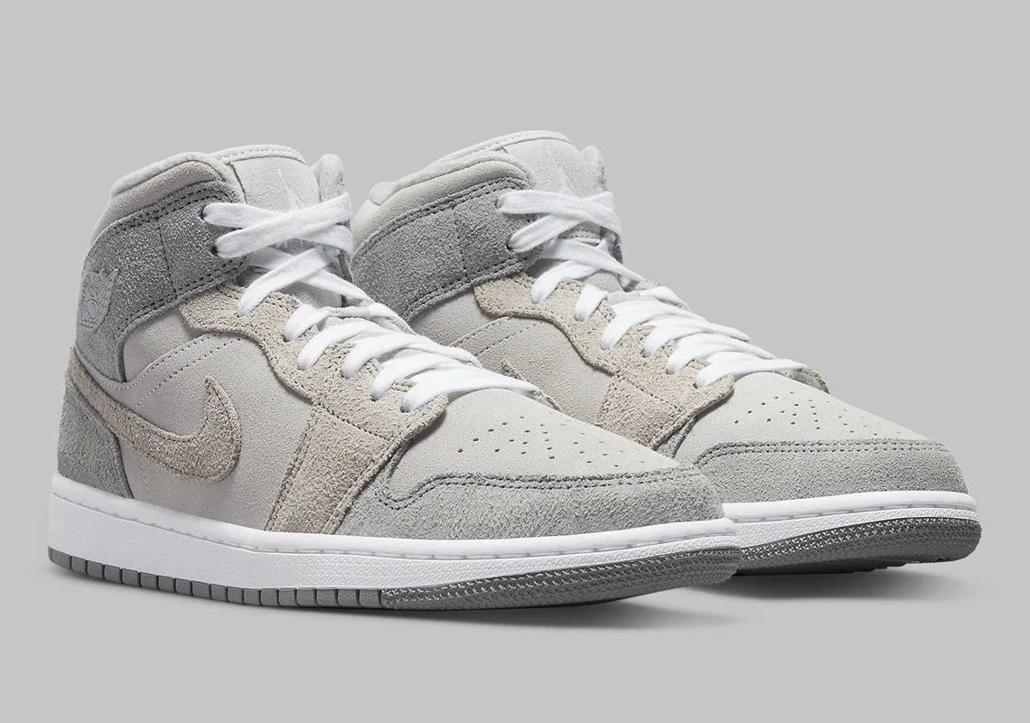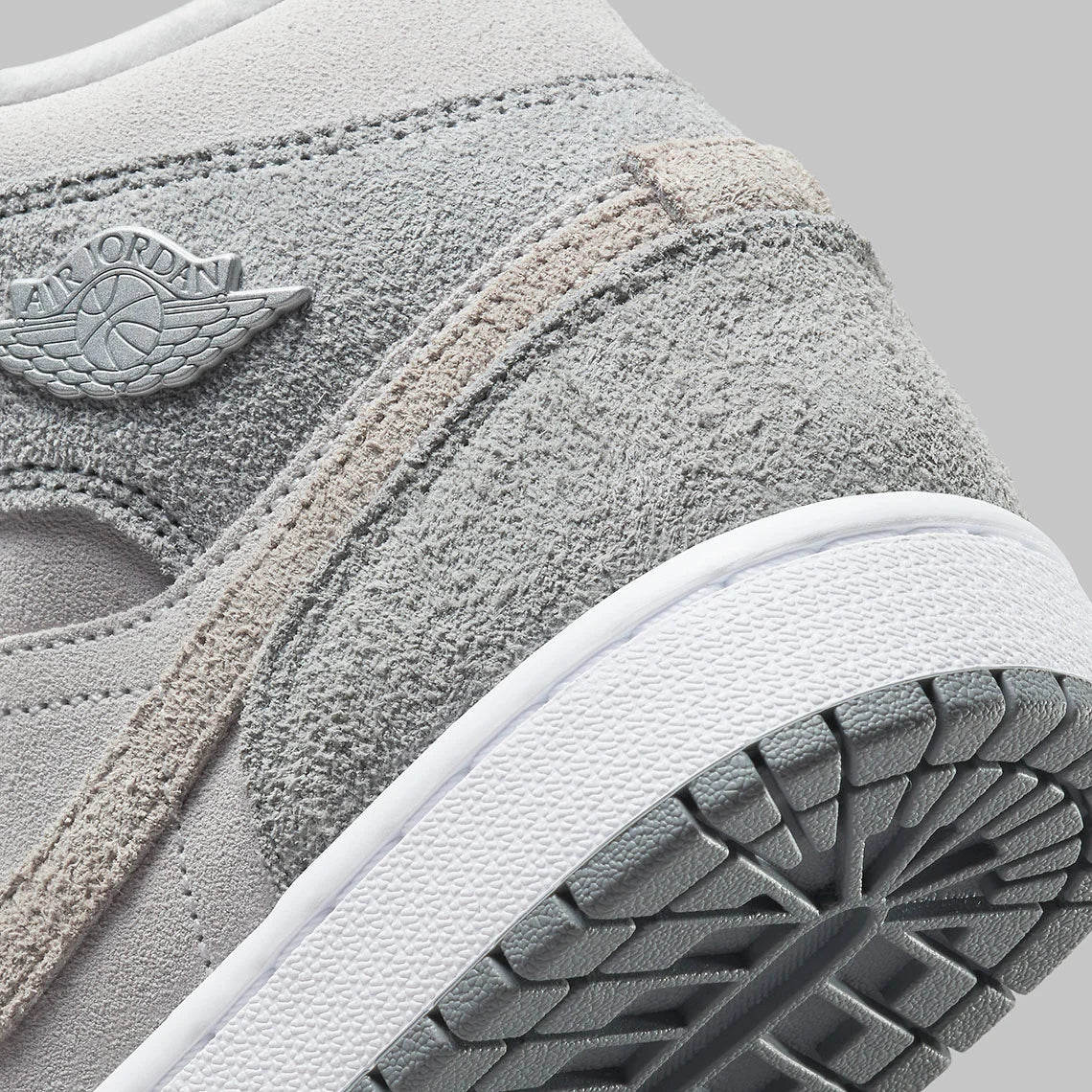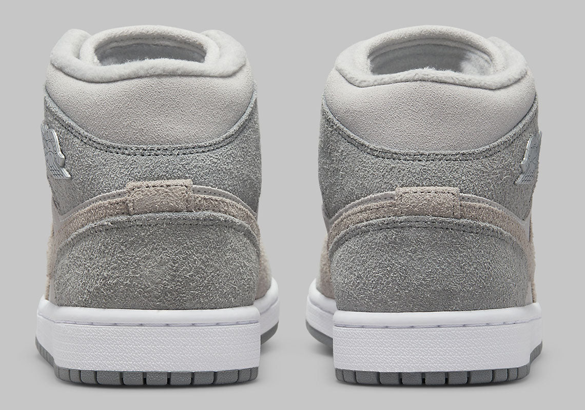 Différentes nuances de gris revendiquent la propriété de l’Air Jordan 1 mid-top, certains panneaux semblant faire un clin d’œil à la version « Neutral Grey » de la garniture high-top de février 2021 (originellement 1985). La doublure intérieure en polaire, cependant, aide l’offre à créer sa propre identité, car le design prêt pour l’hiver s’écarte radicalement de ce qui a été fait historiquement par la ligne Air Jordan. Enfin, l’unité de la semelle, qui rappelle les Nike Dunk, opte pour une semelle intermédiaire blanche et une semelle extérieure grise qui contribuent à l’aspect épuré de la basket.