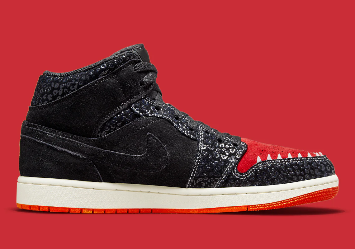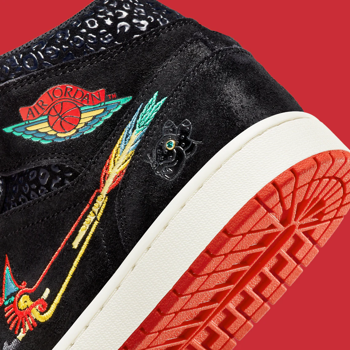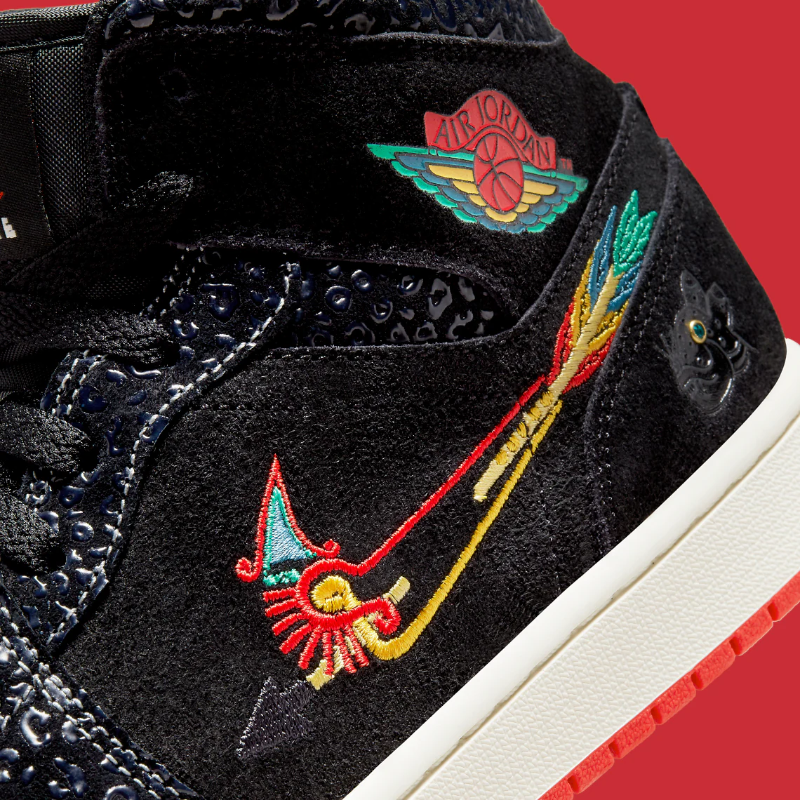 La Air Jordan 1 Mid SE « Siempre Familia » est une édition spéciale de la chaussure de basket classique publiée dans le cadre de la collection « Dia de los Muertos » de Nike, qui rend hommage à la fête traditionnelle mexicaine. Un look créatif pour la Air Jordan 1 Mid, la « Siempre Familia » est un coloris inspiré de Mictlán, le monde souterrain de la mythologie aztèque qui s’étend sur neuf niveaux. Les détails incluent des graphiques et des imprimés inspirés des animaux qui font référence à ceux qui nous conduisent dans l’au-delà. Le dessus de la chaussure est principalement noir avec des détails uniques tels que des superpositions texturées et un Swoosh modifié en forme d’arc et de flèche. Le logo « Wings » est conçu dans un look multicolore inspiré de « Dia de los Muertos ». Des dents inspirées du jaguar bordent la boîte à orteils perforée rouge.