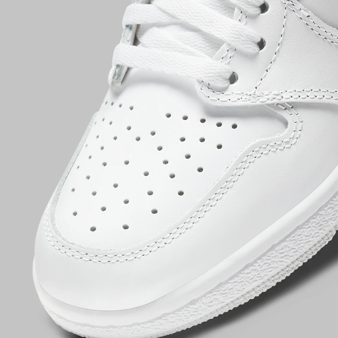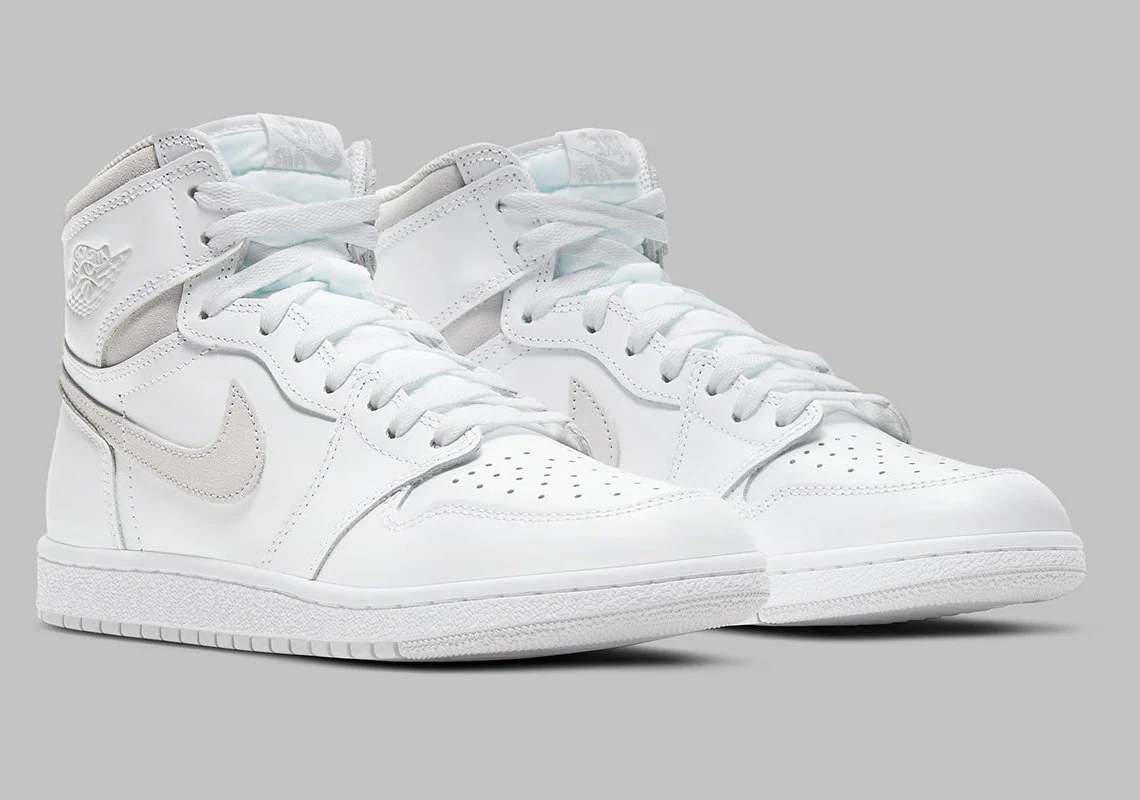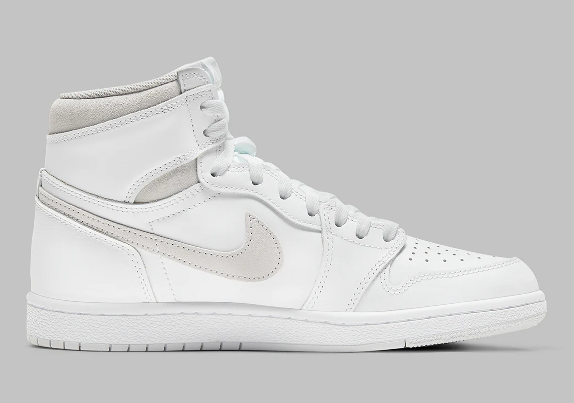 La Air Jordan 1 ’85 Neutral Grey présente des différences notables par rapport aux autres Jordan 1 High retros. La plus grande différence réside dans la forme de la Neutral Grey, puisque le talon légèrement incurvé, qui est standard depuis les Chicago 1 de 2015, est sous-couche avec une coupe plus droite. De là, le logo « Wings » sur le col a été revu pour lui donner un aspect plus texturé, tandis que le Swoosh et les sous-couches du col en daim Neutral Grey ajoutent au statut original de la basket.