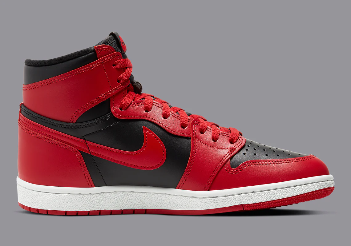 Avec la Air Jordan 1 High OG ’85 « Varsity Red », la marque Jordan revient à la forme et au style d’origine de la première chaussure signature de Michael Jordan. Comme lors de ses débuts en 1985, la Air Jordan 1 ’85 « Varsity Red » présente une hauteur, des formes de panneaux, des matériaux et une marque fidèles à l’original pour ressembler à une version de 1985. Cette édition « Varsity Red » présente un look très similaire au coloris emblématique « Bred » porté par Jordan. La tige présente des superpositions en cuir rouge audacieux qui contrastent avec la base en cuir noir. Des Swooshes latéraux en cuir rouge, un bout en cuir noir perforé, une languette en nylon noir et un logo Wings noir sur le col complètent la tige. Une semelle intercalaire blanche et une semelle extérieure rouge contrastante complètent le coloris en édition limitée.
