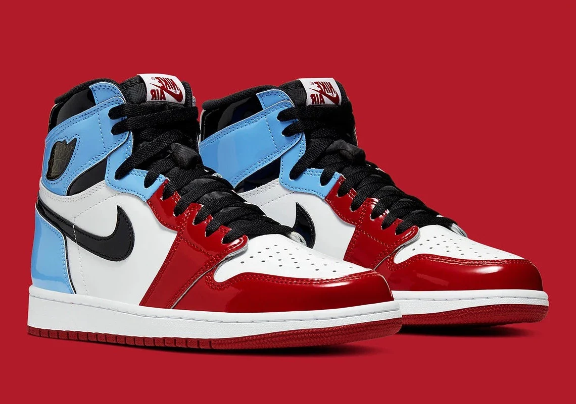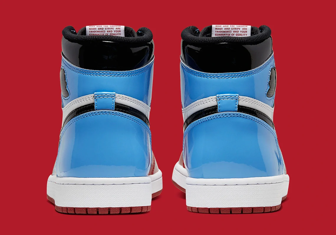 La Air Jordan 1 « Fearless » célèbre le dixième anniversaire du discours d’intronisation au Panthéon du basket-ball de Michael Jordan en 2009. Habillée de cuir verni de première qualité sur sa tige, la chaussure combine les couleurs bien-aimées de « UNC » et des Chicago Bulls dans un style « split« . Le coloris fusion se caractérise par une base en cuir verni blanc sur le milieu de la chaussure et un bout perforé blanc.