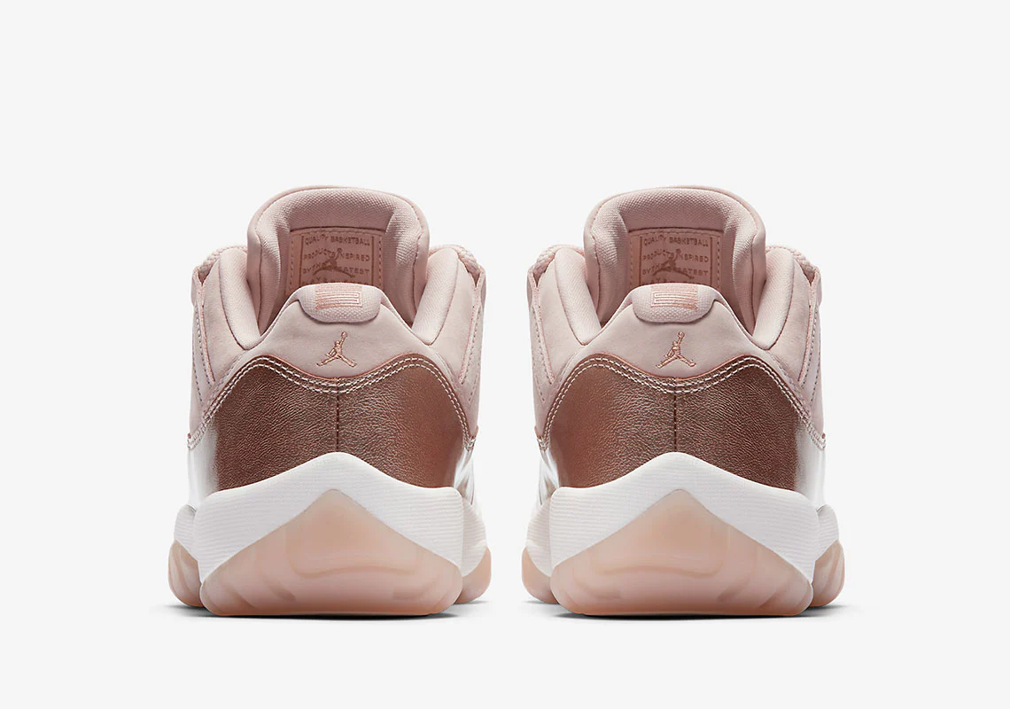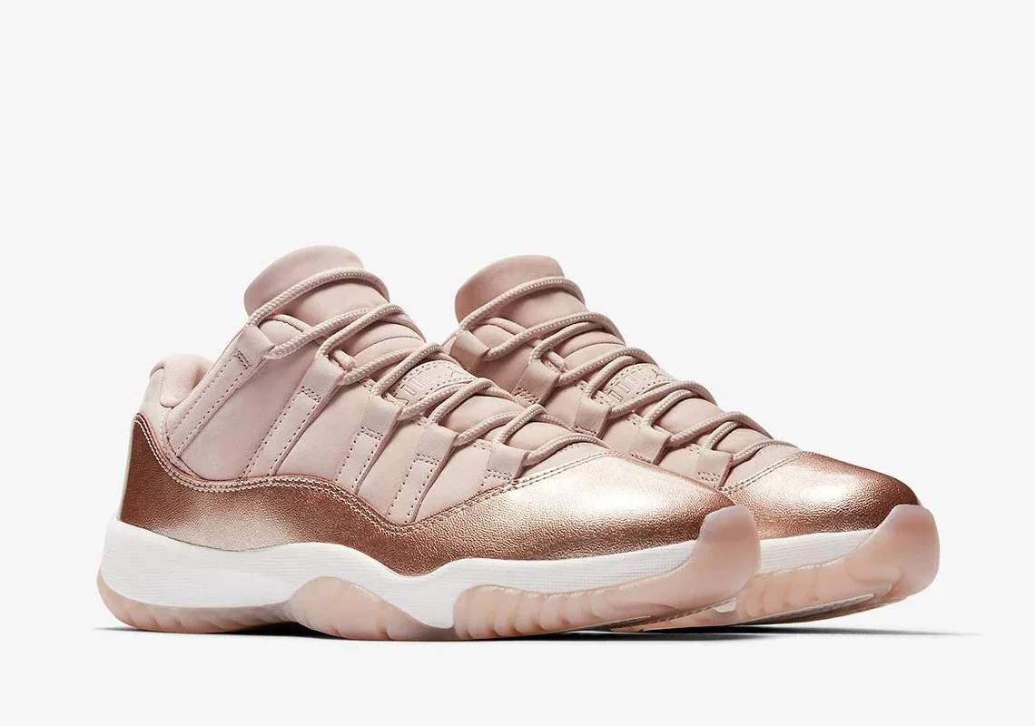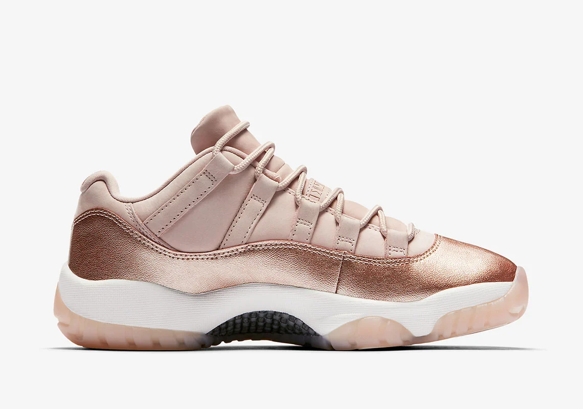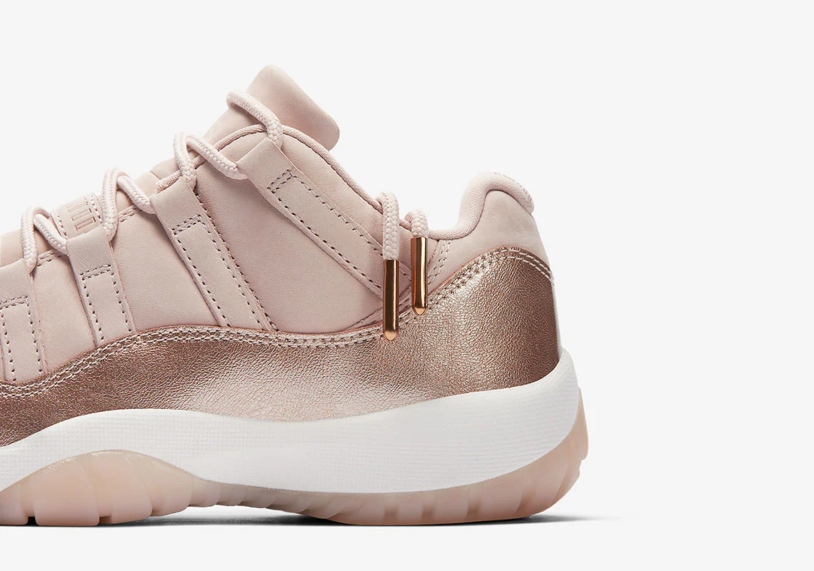 Jordan Brand continue de se concentrer sur les consommatrices de baskets en 2018, car des images officielles de la prochaine 11 Low « Metallic Red Bronze » ont fait surface. Avec des tons naturels pour une esthétique raffinée, la chaussure arbore une tige en bronze métallique clair avec des lacets assortis et les fameux détails en cuir verni de la 11 qui arrivent dans un éclat métallique audacieux qui complète le coloris pastel doux utilisé sur la tige. Une semelle intermédiaire blanche et une semelle extérieure en gomme semi-translucide complètent le look premium de la chaussure, et les embouts de lacets dorés ajoutent une touche finale de luxe majestueux à ce coloris.