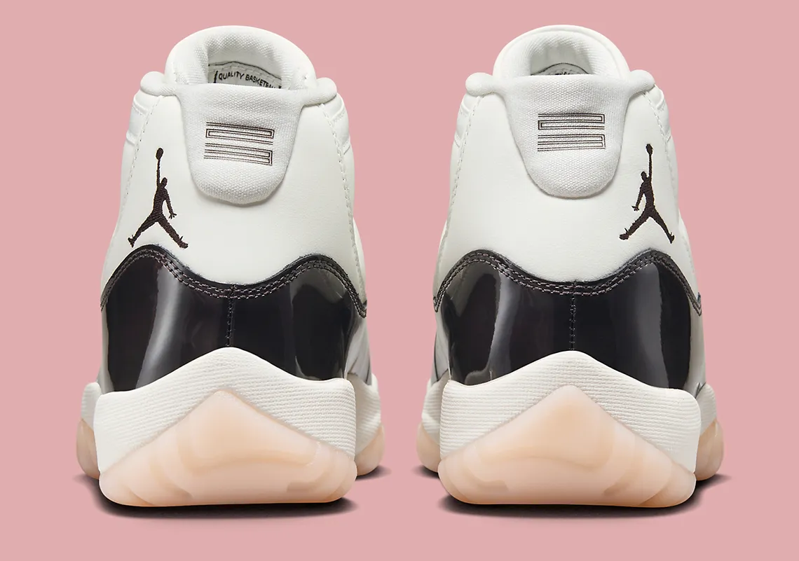 Classée selon son trio de tons, la concoction de teintes crème, rose et marron évoque instantanément des boules d’une friandise crémeuse et sucrée. En tant que telle, la tige en cuir foulonné est coulée dans un léger traitement « Voile » rappelant l’arôme de vanille tout en agissant simultanément comme une ardoise vierge pour que les deux dernières teintes brillent. En tant que tel, l’emblématique garde-boue en cuir verni est frappé d’une teinte sombre « Velvet Brown » qui est prise en sandwich entre une semelle intercalaire blanc cassé. D’autres traitements au chocolat mettent en valeur les accents de la languette et le logo Jumpman du talon tandis que la bande de roulement semi-translucide sous le pied nettoie dans une finition rose « Atmosphère » vivante.