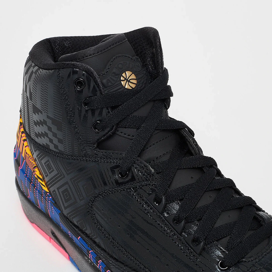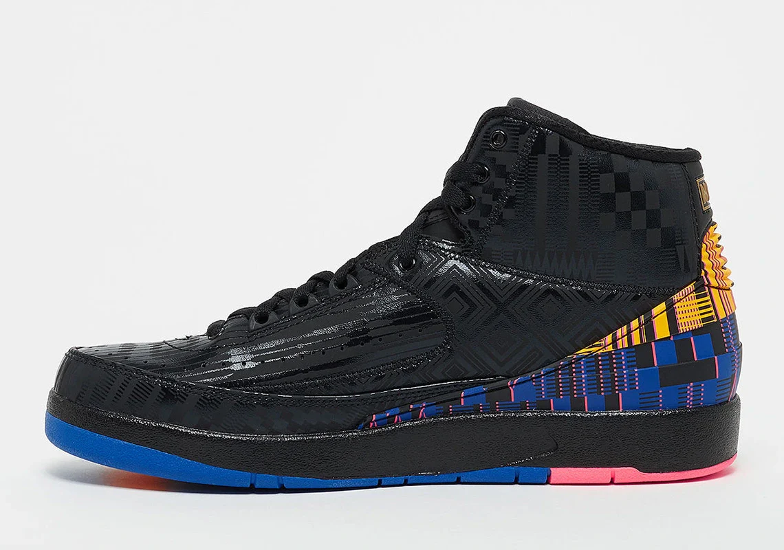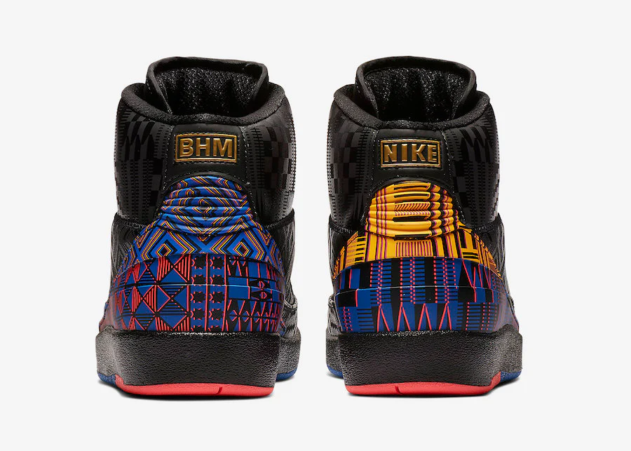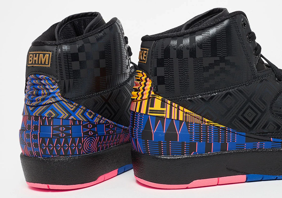 La Air Jordan 2 Retro ‘Black History Month’ 2019 est sortie en février 2019 dans le cadre de la collection Black History Month de Nike. La tige en cuir de la chaussure présente un motif subtil sur toute la partie noire de la construction, mis en valeur par des imprimés vibrants inspirés du tissu kente sur les talons qui diffèrent d’une chaussure à l’autre. Sous le pied, une semelle intermédiaire en Air blanc laisse place à une semelle extérieure en caoutchouc coloré, tandis que le marquage » BHM » en or métallique fait un clin d’œil à l’occasion.