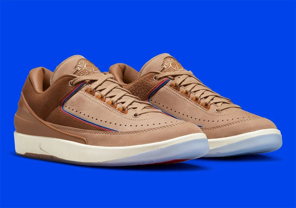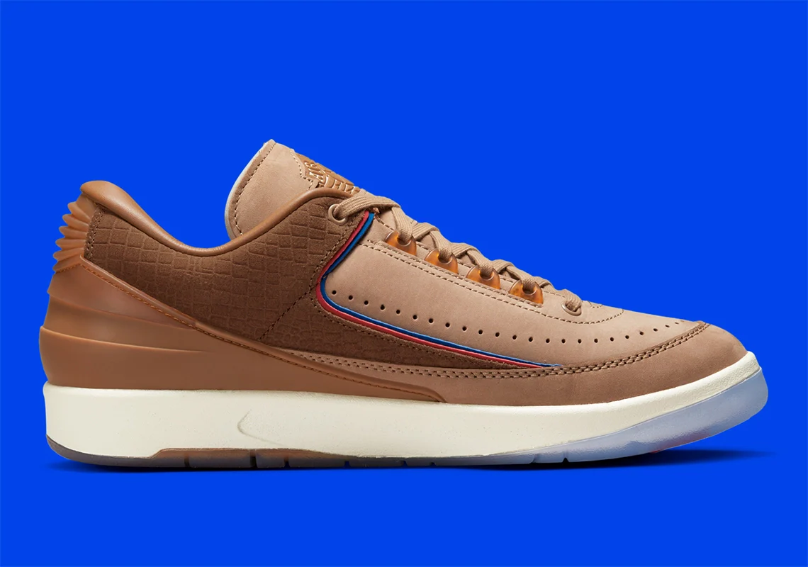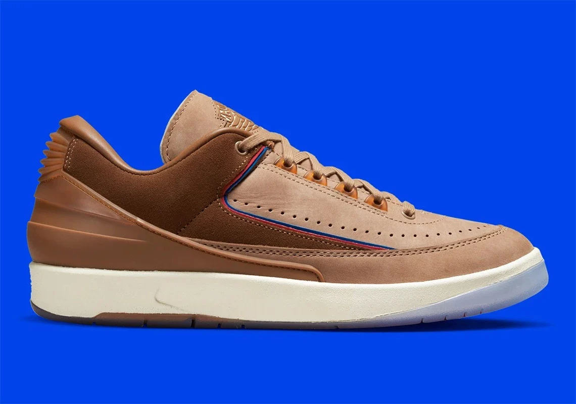 La Two 18 x Air Jordan 2 Retro Low SP apporte un nouveau look et une nouvelle sensation à la franchise AJ2. Les liserés bleu et rouge contrastent avec le nubuck tan de la tige et les superpositions de marron terreux. La silhouette classique est également rehaussée par des détails raffinés, notamment des œillets en […]