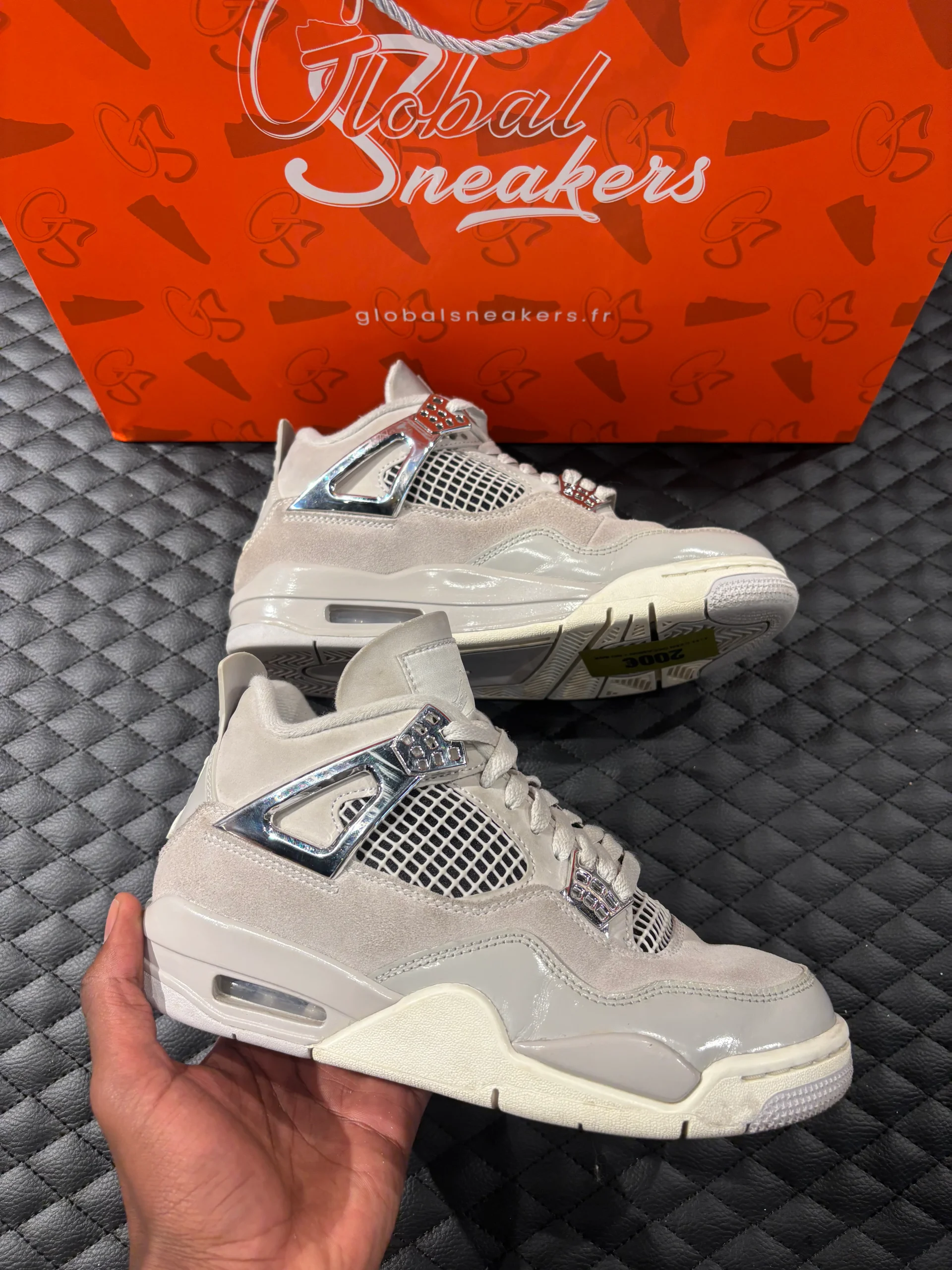 Cette Jordan 4 Rétro Frozen Moments pour femme, affichée en état 8,5/10, révèle une silhouette raffinée sublimée par un coloris gris perlé relevé de nuances douces qui magnifient chaque détail iconique du modèle. La combinaison harmonieuse de cuir premium, de matériaux texturés et d’empiècements sculptés offre une allure à la fois moderne et intemporelle, renforcée par l’atmosphère glacée propre à cette édition. L’usure reste délicate, la forme demeure parfaitement conservée, la semelle est propre, et seules quelques traces légères soulignent une utilisation soignée. Sans boîte mais authentifiée et préparée avec attention, cette Frozen Moments incarne l’élégance froide et lumineuse qui définit cette déclinaison femme devenue l’une des plus recherchées, entre héritage basketball et sophistication contemporaine.