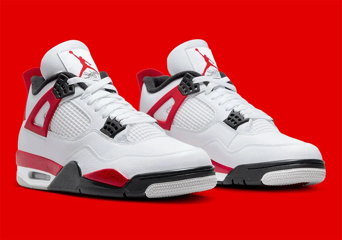Après plusieurs teasers au cours des derniers mois, les images officielles de la très attendue Air Jordan 4 « Red Cement » ont enfin fait surface. La Air Jordan 4 « Red Cement » s’inspire directement d’une OG très appréciée : la « White Cement ». Bien qu’elle emprunte de nombreux éléments de design à ce classique, cette version rétro s’éloigne quelque peu du design original, remplaçant la teinte grise caractéristique de son impression mouchetée par du « Fire Red » (rouge feu). Ailleurs, la paire reste fidèle, avec une tige en cuir blanc et des détails noirs le long de la semelle, des œillets et de la doublure.