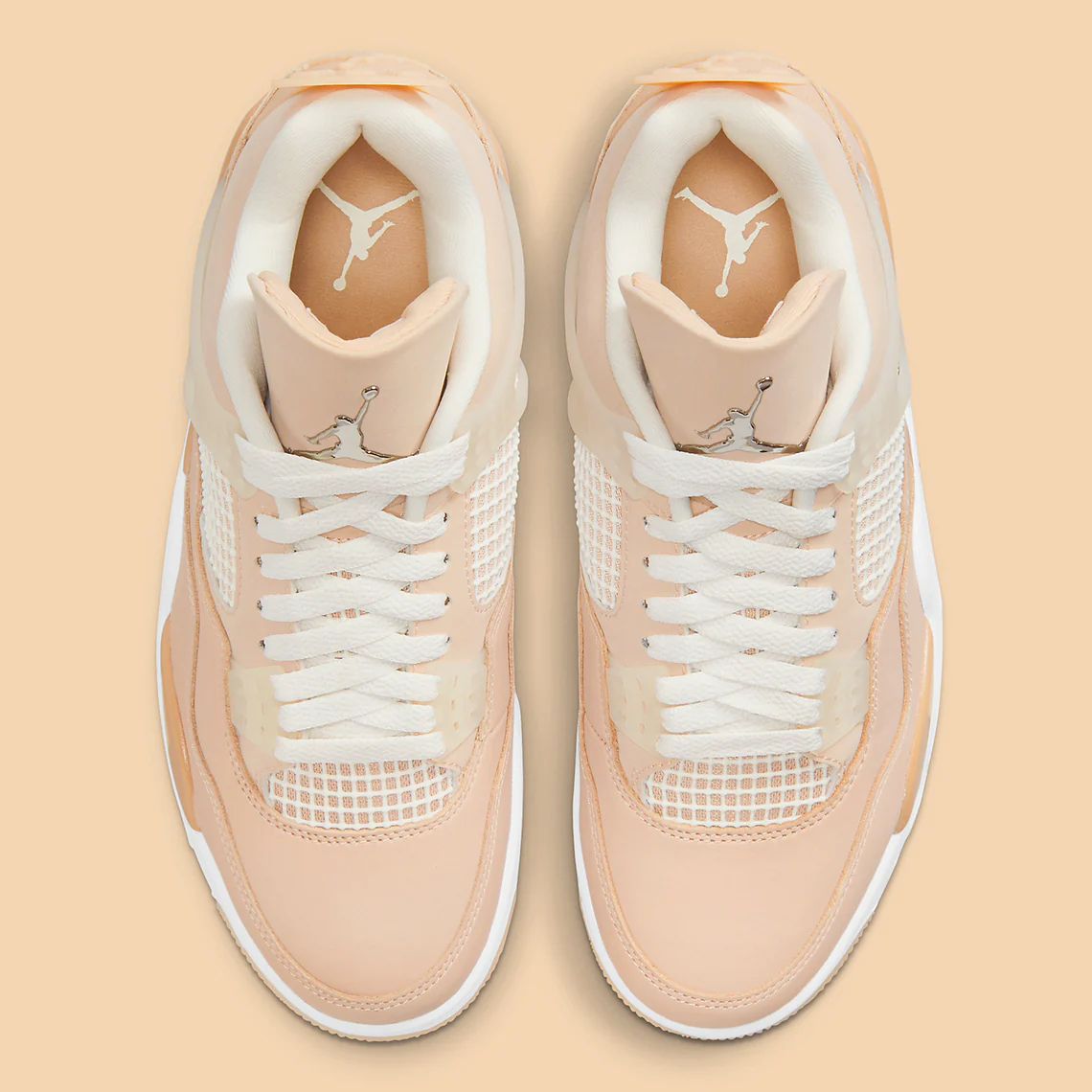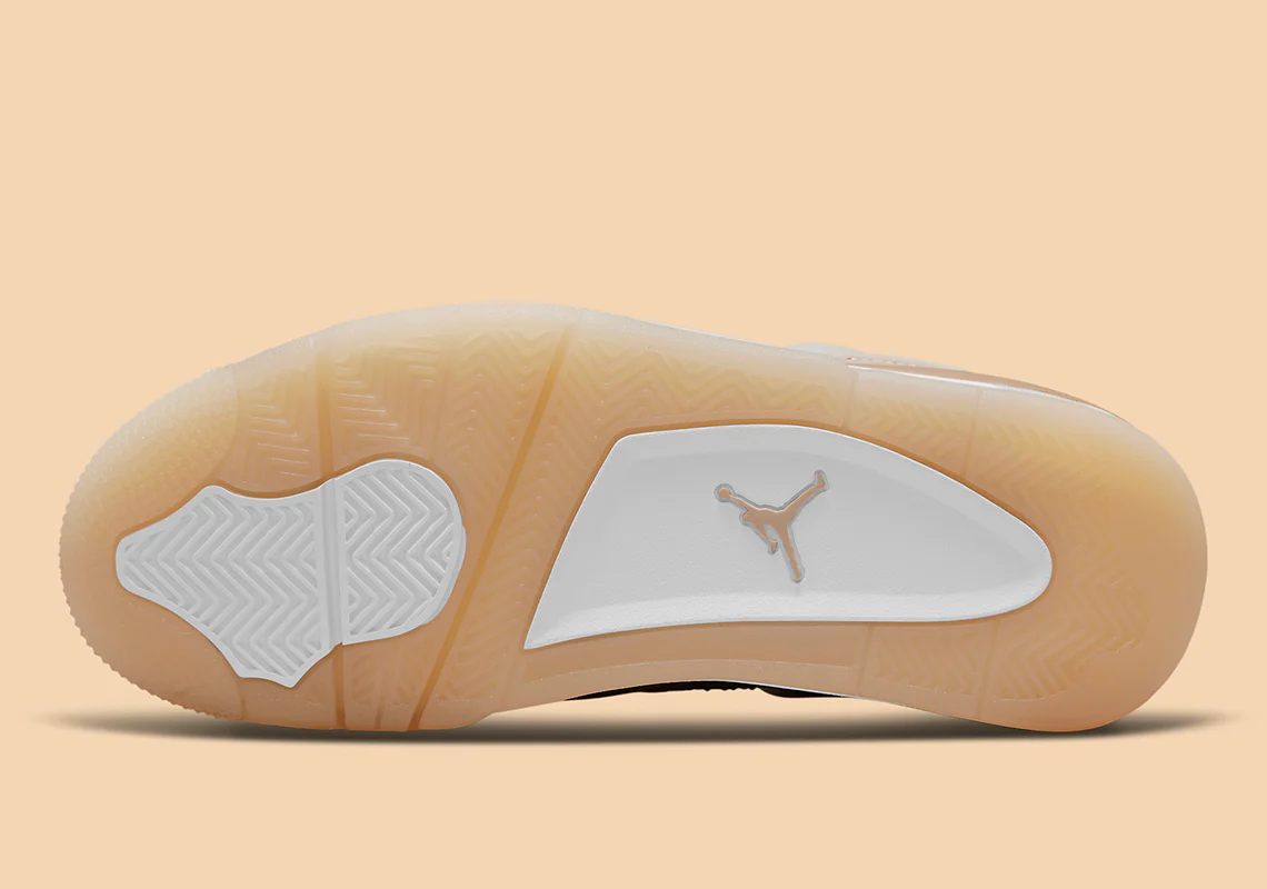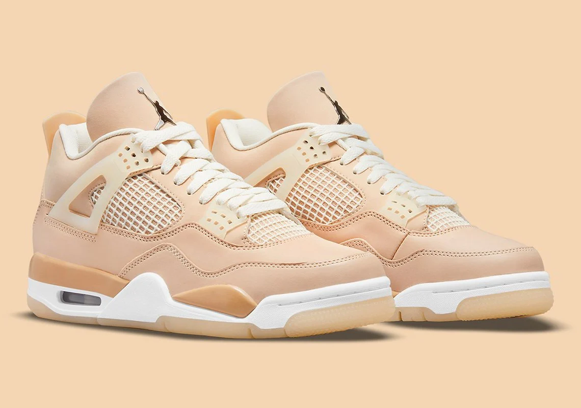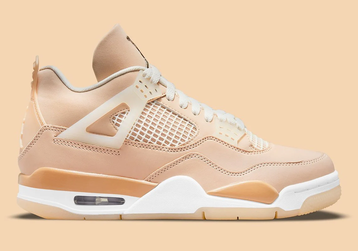 La Air Jordan 4 Retro ‘Shimmer’ est une version neutre du design emblématique du basketball. L’empeigne de la chaussure présente une construction en cuir, finie dans une série de teintes beiges et complétée par le filet du panneau de quart. Des œillets moulés sécurisent l’ajustement, tandis que la languette comprend la marque Jumpman en argent métallique pour mettre en valeur le look. Sous le pied, la semelle intermédiaire abrite l’air visible habituel dans le talon pour offrir un amorti, laissant la place à une semelle extérieure en caoutchouc à chevrons pour la traction.