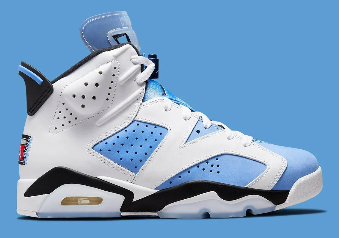 La Air Jordan 6 Retro ‘UNC Home’ rend hommage à l’alma mater de Michael Jordan, arborant un coloris rappelant l’Université de Caroline du Nord. Les baskets à cerceaux classiques présentent une tige en cuir blanc sur des sous-couches en nubuck University Blue.