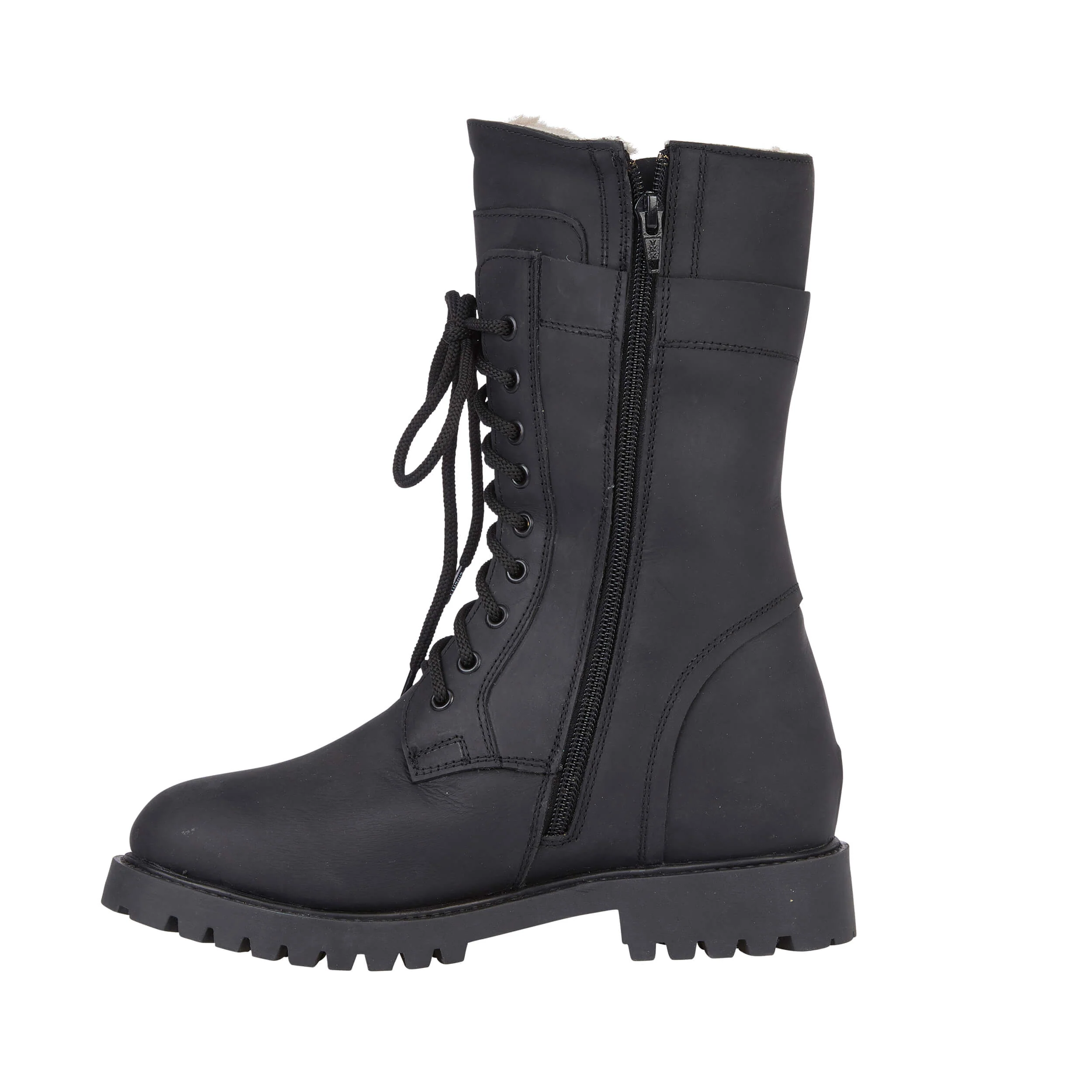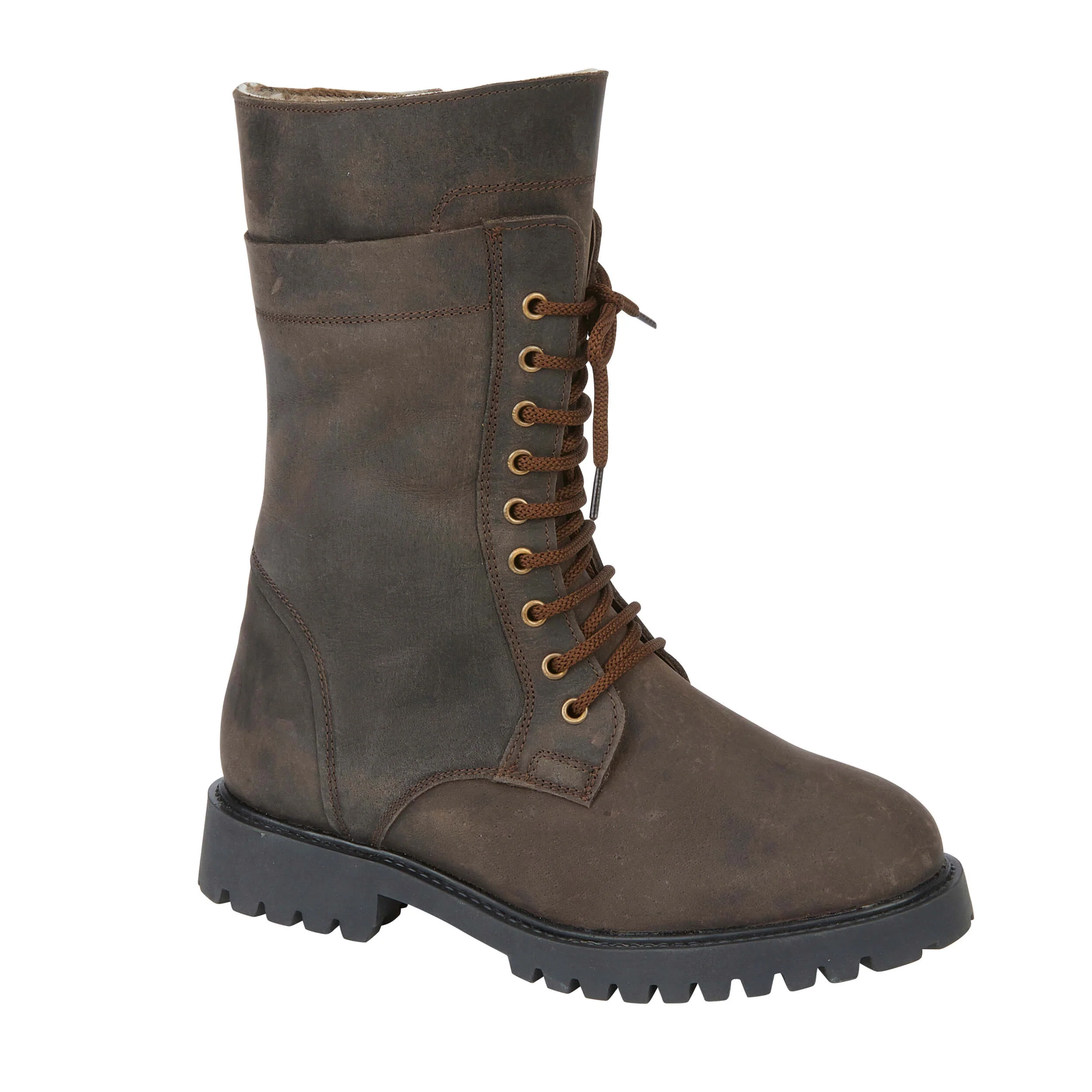 Our NEW calf height lace up boot. With our signature sheepskin lining from top to toe, including the insole, a durable non slip rubber sole and a waterproof waxed leather upper for practicality. It has an inside zip as well as laces at the front, to ensure the perfect fitting.