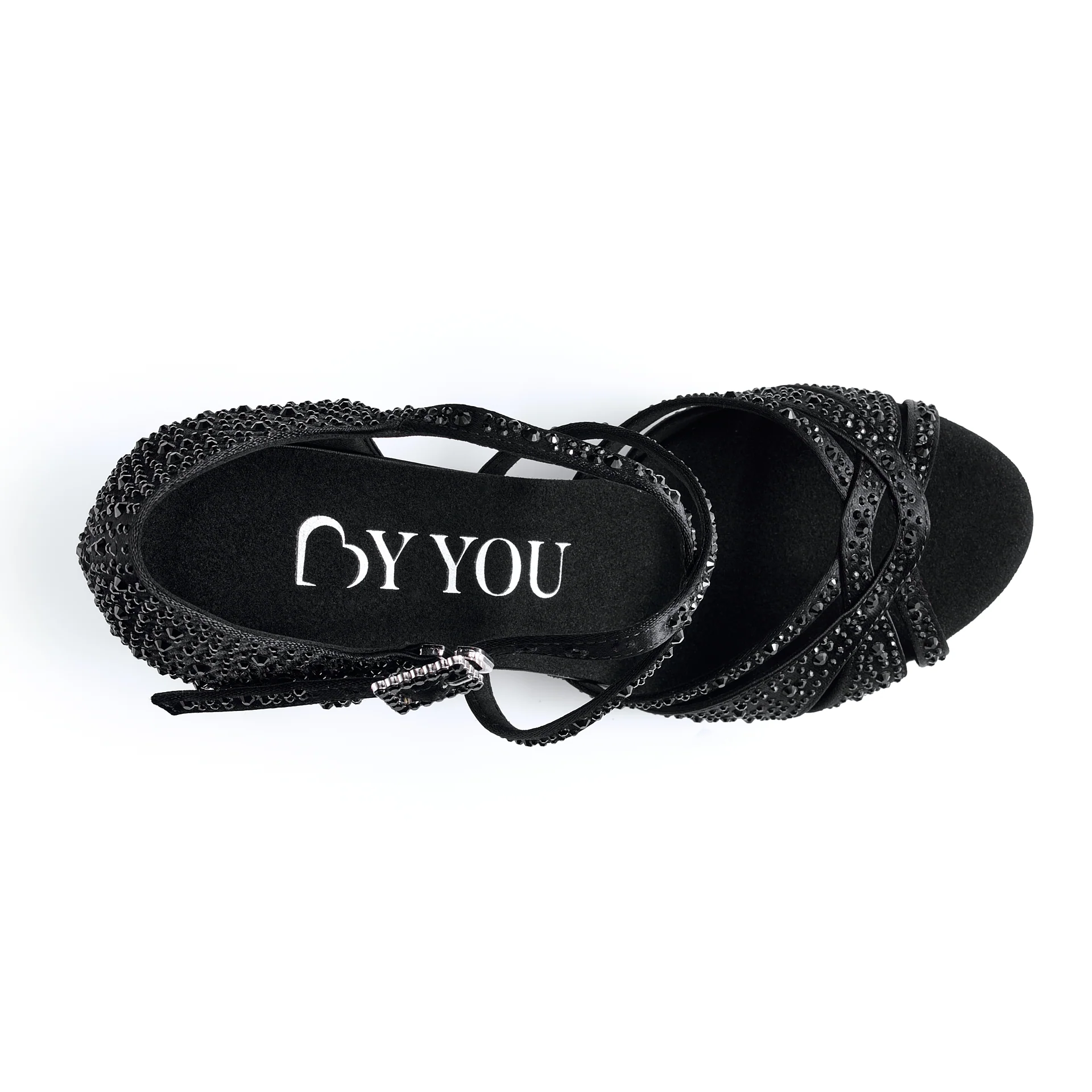 Chaussures de danse compensées. Chaussures de danse noir et strass. Chaussure de danse à plateforme. Chaussures de danse talons et plateau.