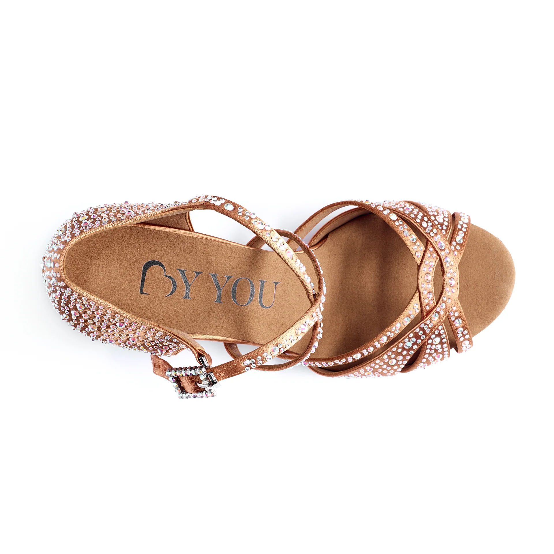 Sublime chaussures de danse latine à strass en satin avec lanière croisée sur le pied, comportant une semelle flexible à double rembourrage pour encore plus de confort.