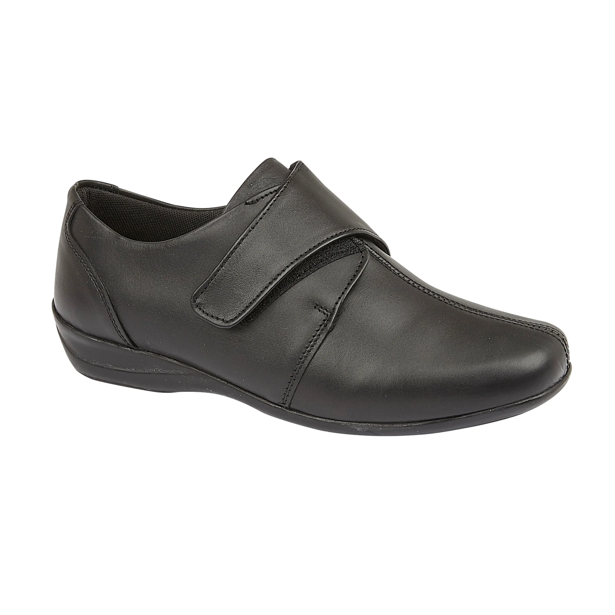 A high quality ladies shoe. Made with a waterproof leather upper, leather insole and hard wearing sole. Velcro fastening. E Fitting (wide).