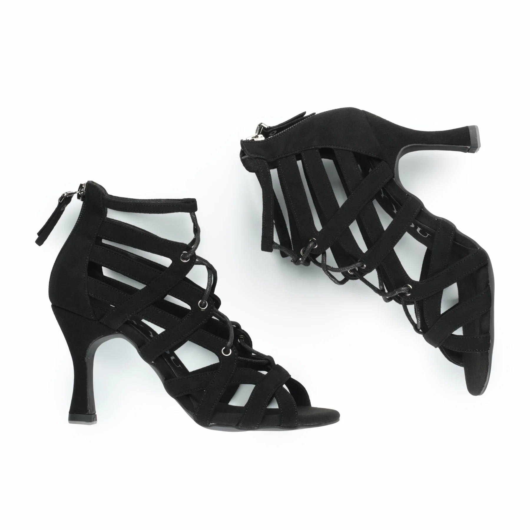 Plus belles chaussures de danse. Bottines de salsa noir strass. Bottines de Kizomba noir strass. Chaussures danse talon 8 cm. Plus belles chaussures de danse à lacets.