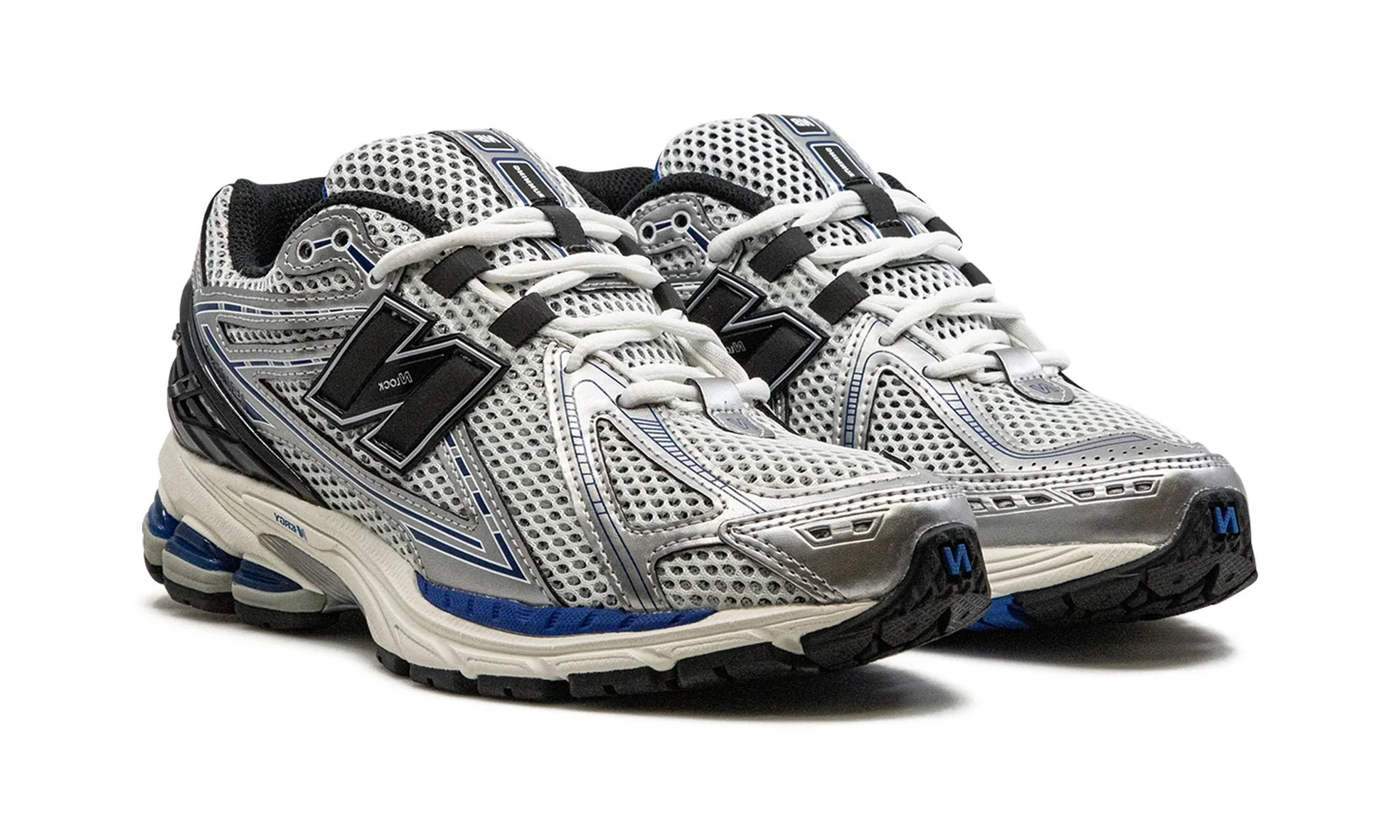 La New Balance 1906R Silver Metallic / Blue Agate revisite la silhouette emblématique des running urbaines des années 2000 avec une finition résolument contemporaine et sophistiquée. Le modèle arbore une tige en mesh blanc cassé, rehaussée de superpositions en cuir métallisé argenté (“Silver Metallic”) et d’accents bleu « Blue Agate », notamment sur le logo “N” ainsi que sur certains panneaux latéraux.