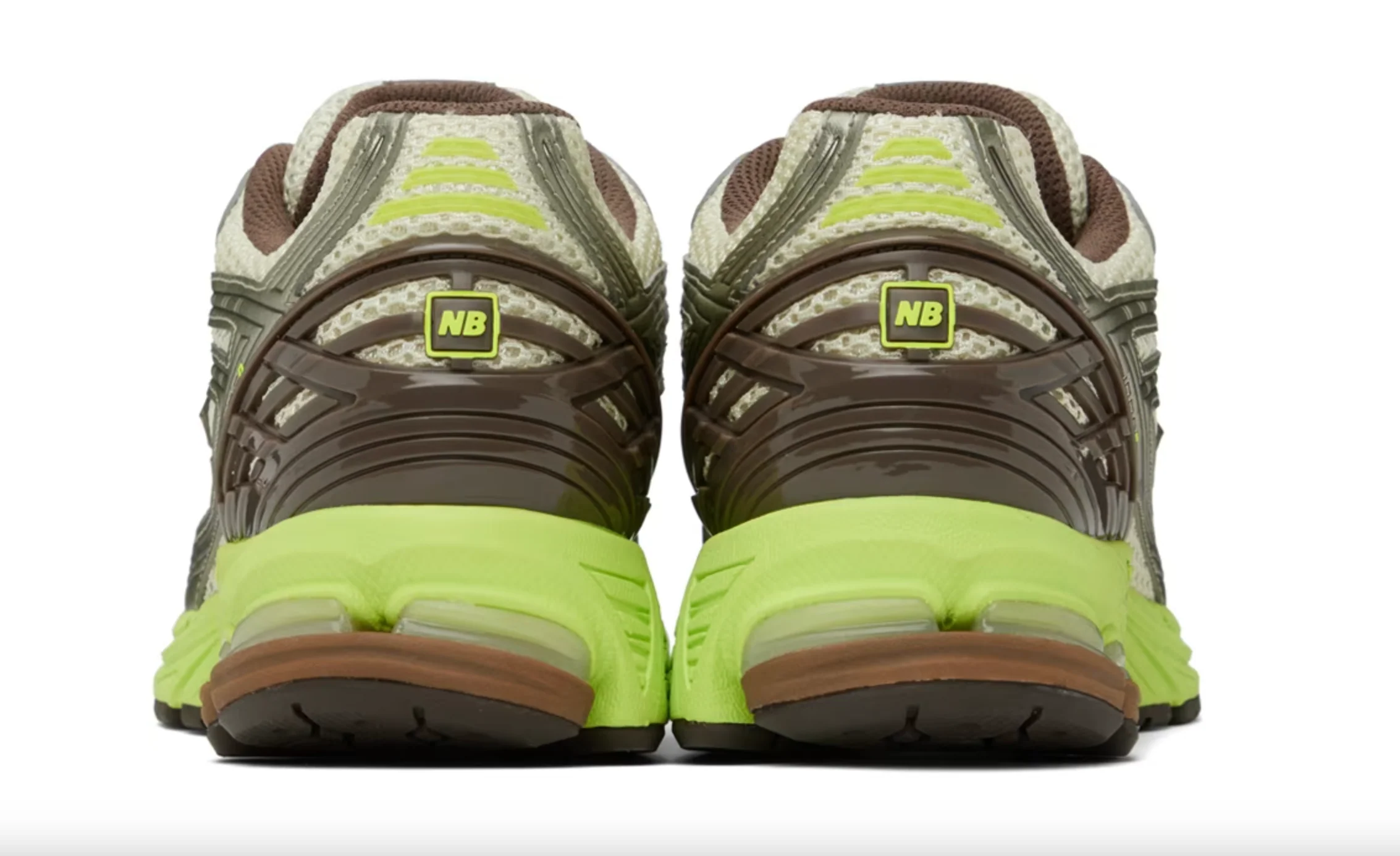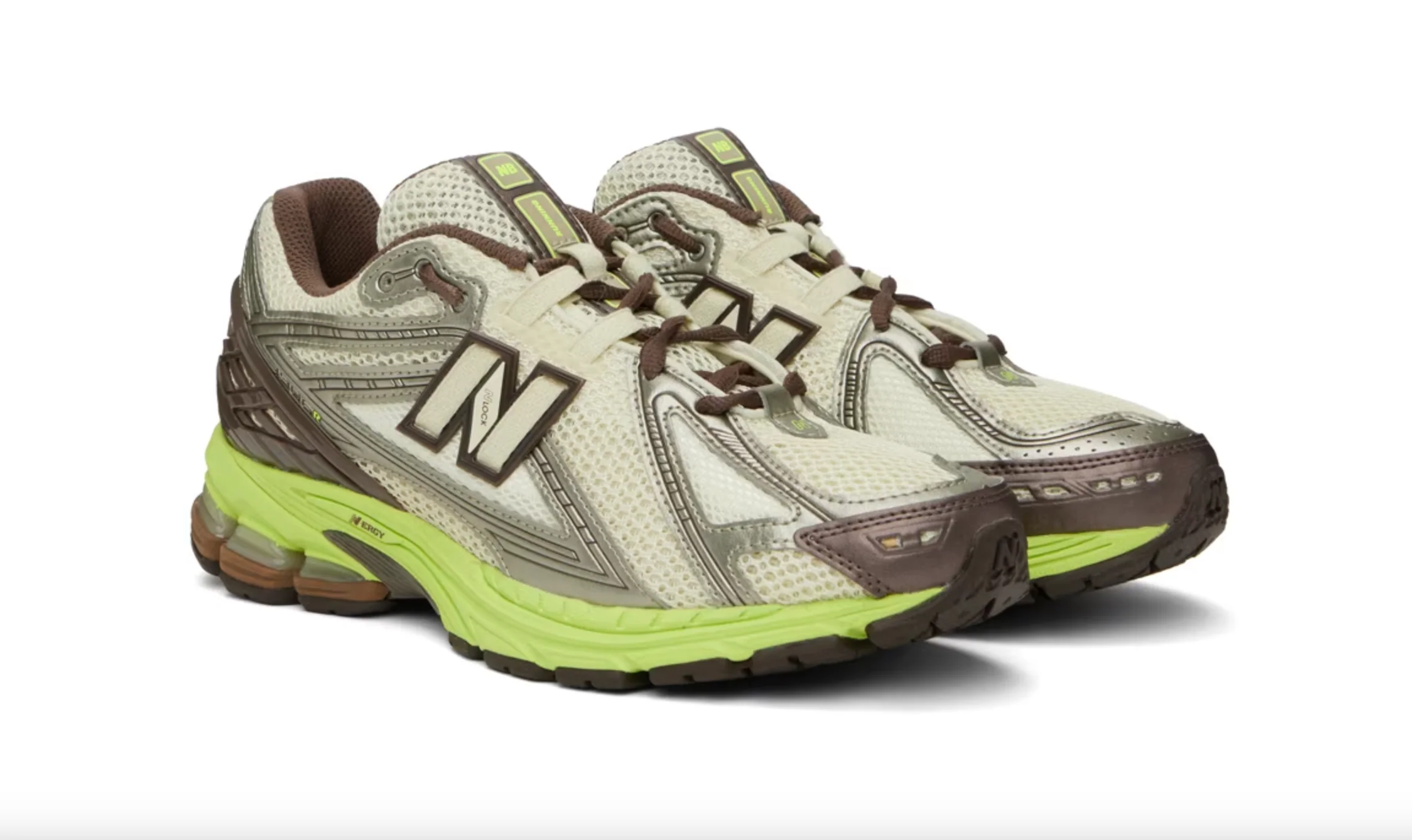 La collaboration entre New Balance et le détaillant canadien SSENSE pour célébrer les 20 ans de ce dernier se matérialise avec la “20th Anniversary” du modèle 1906R. Ce modèle exclusif se distingue par une attention méticuleuse aux détails et une palette de couleurs sophistiquée : tige en mesh écru/beige clair, overlays métalliques finition « bronze anodisé », talon et embouts en cuir brun foncé, et une semelle intermédiaire d’un vert pastel « pistachio » qui vient donner un accent visuel dynamique.