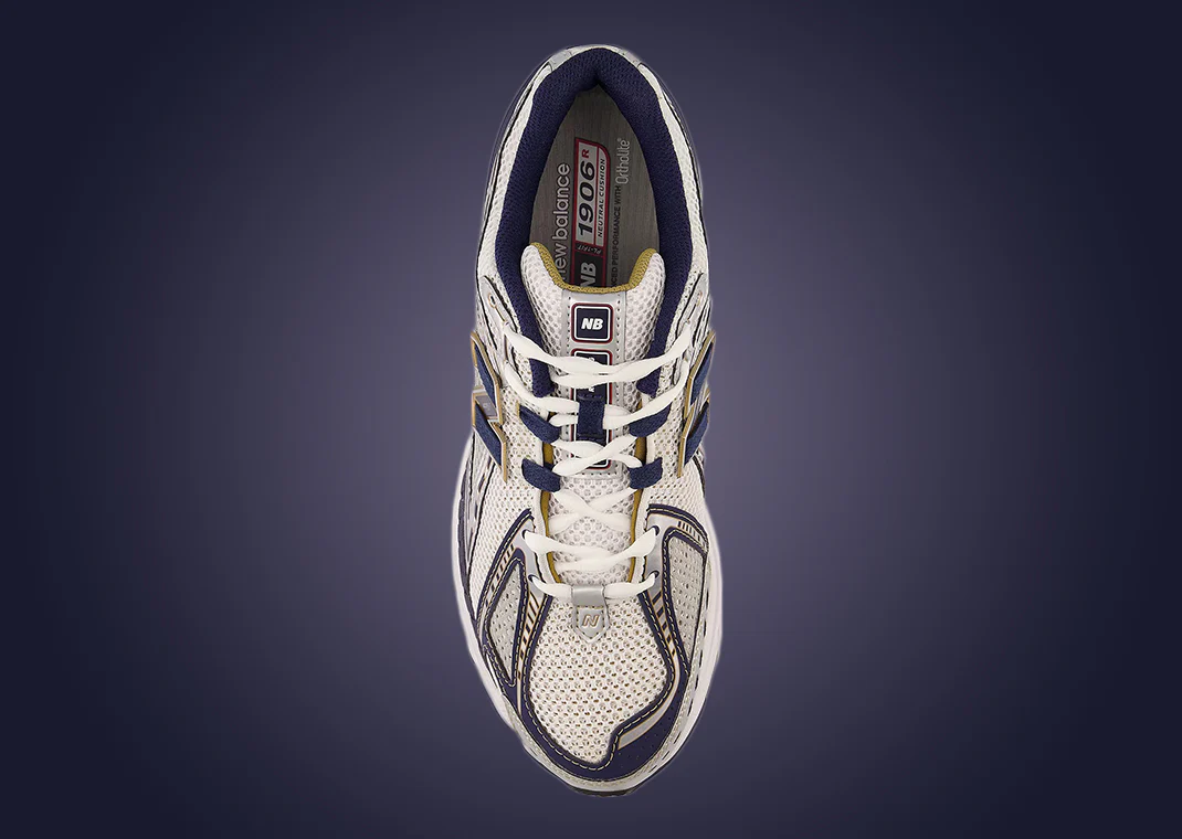 Le modèle New Balance 1906R White/Navy/Gold, revisite la silhouette d’héritage running des années 2000 avec une exécution haut de gamme et une palette raffinée.