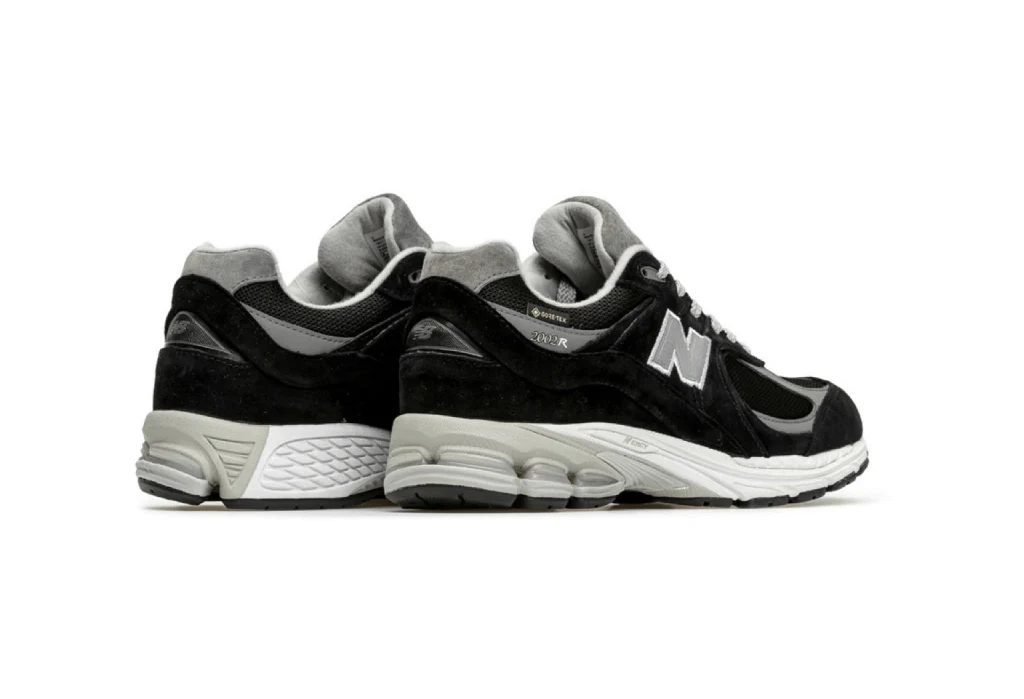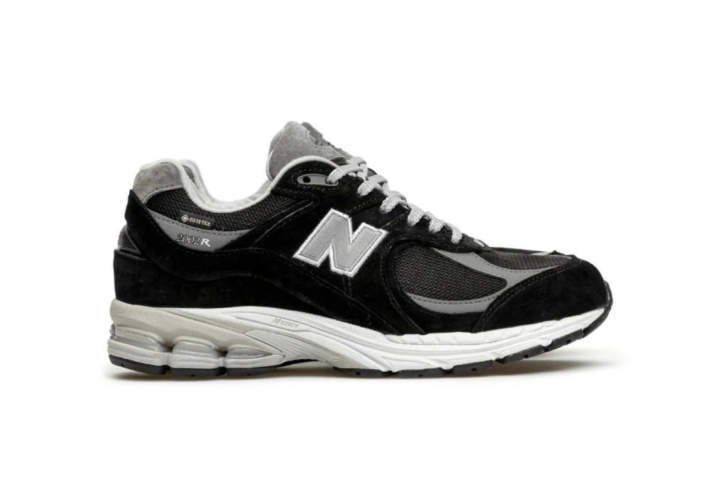 La New Balance 2002R Gore‑Tex Black Castlerock, revisite l’icône 2002R avec une construction imperméable Gore-Tex®, combinée à une palette sophistiquée en noir et gris « Castlerock ».