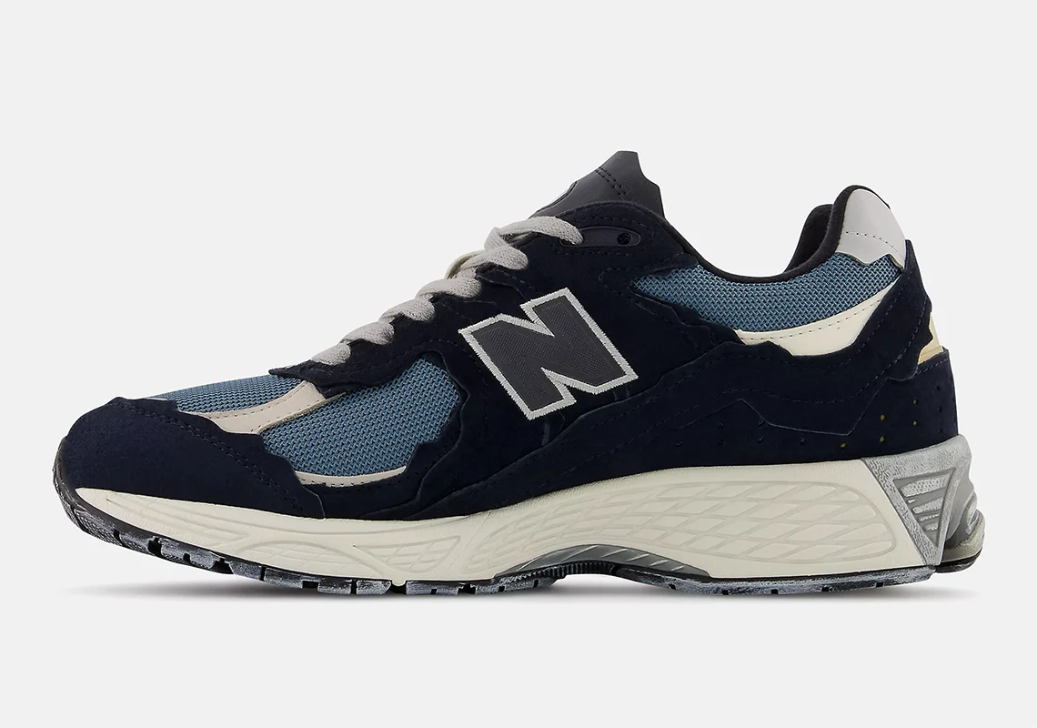 La New Balance 2002R Protection Pack Dark Navy sublime la silhouette iconique de la 2002R avec une approche artisanale et une palette profonde, signature du Protection Pack. Cette version se distingue par une tige en mesh bleu marine foncé, recouverte de superpositions en daim brut aux bords irréguliers et effilés, créant un jeu de textures riche et expressif. Le contraste subtil entre bleu nuit et gris ardoise confère à la sneaker une allure élégante et contemporaine, tandis que la finition légèrement déstructurée rappelle le savoir-faire manuel du pack. Sous le pied, la technologie ABZORB assure une absorption optimale des chocs, et le système N-ERGY garantit un amorti réactif et une stabilité fluide. Véritable fusion entre design brut et performance moderne, la Dark Navy s’impose comme une interprétation sophistiquée et intemporelle de la 2002R.