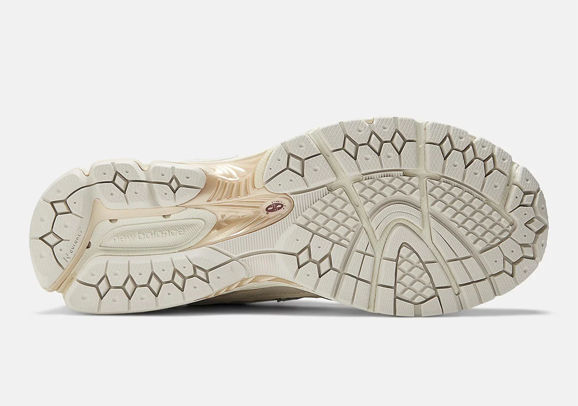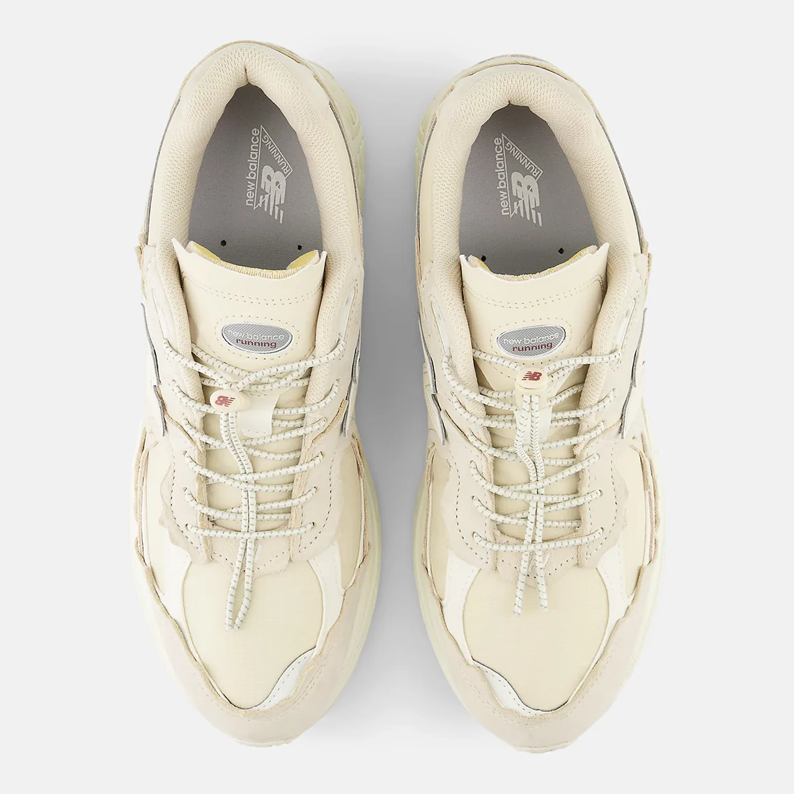 La palette “Sandstone / Turtledove” se combine avec élégance : une tige en mesh et nylon ripstop beige “Sandstone”, agrémentée de superpositions en daim suédé ton-sur-ton et de touches blanc cassé pour un rendu à la fois discret et sophistiqué.