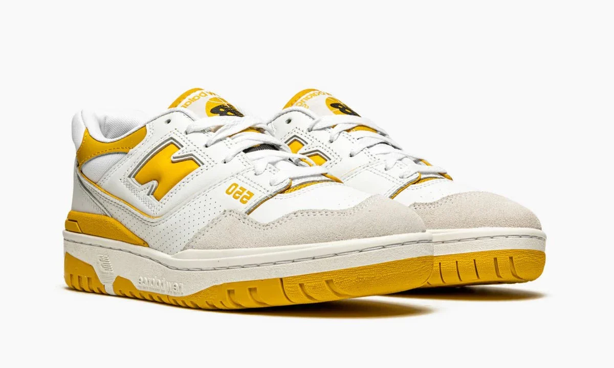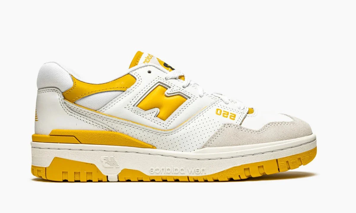 La New Balance 550 Sea Salt Varsity Gold, fait partie du Spring Pack de 2021 de la marque, incarnant parfaitement l’alliance entre héritage basket rétro et design contemporain.