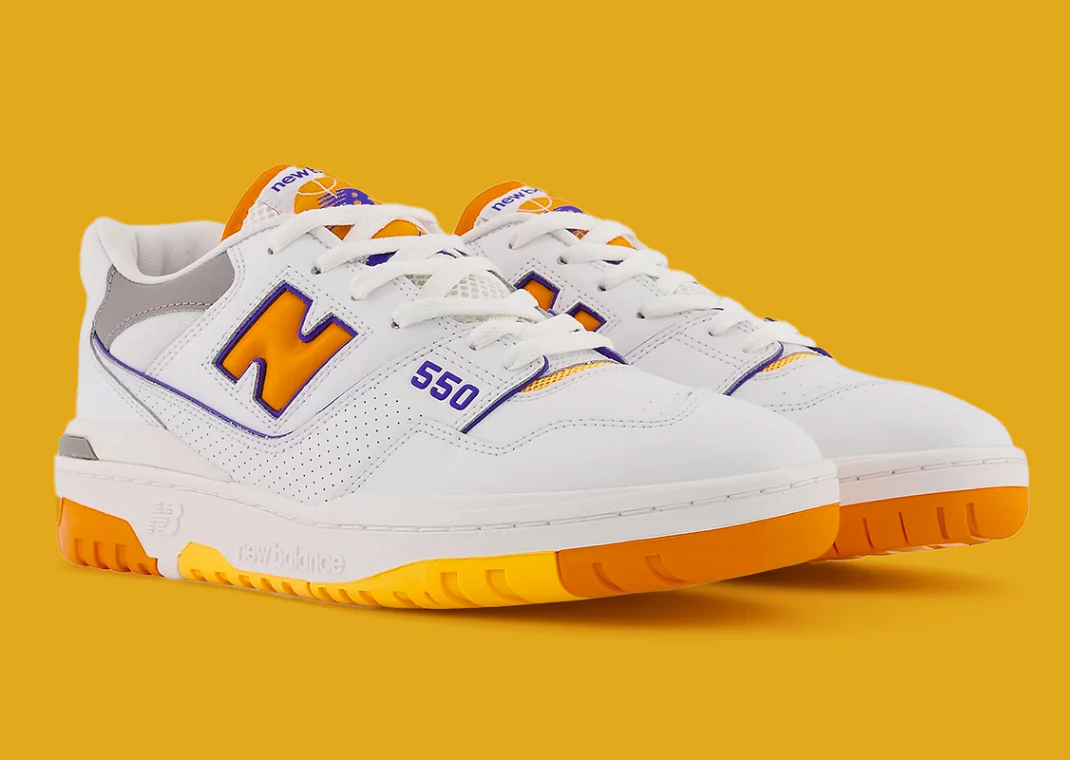 La New Balance 550 White Vibrant Orange, revisite avec brio la silhouette rétro-basket des années 80 du modèle 550, en lui infusant une palette lumineuse et contrastée. Elle est dotée d’une tige en cuir blanc premium “White”, perforée sur l’empeigne pour ajouter de la texture, et rehaussée par des accents “Vibrant Orange” (notamment sur le logo latéral « N », le talon et certaines surpiqûres) pour un impact visuel fort.