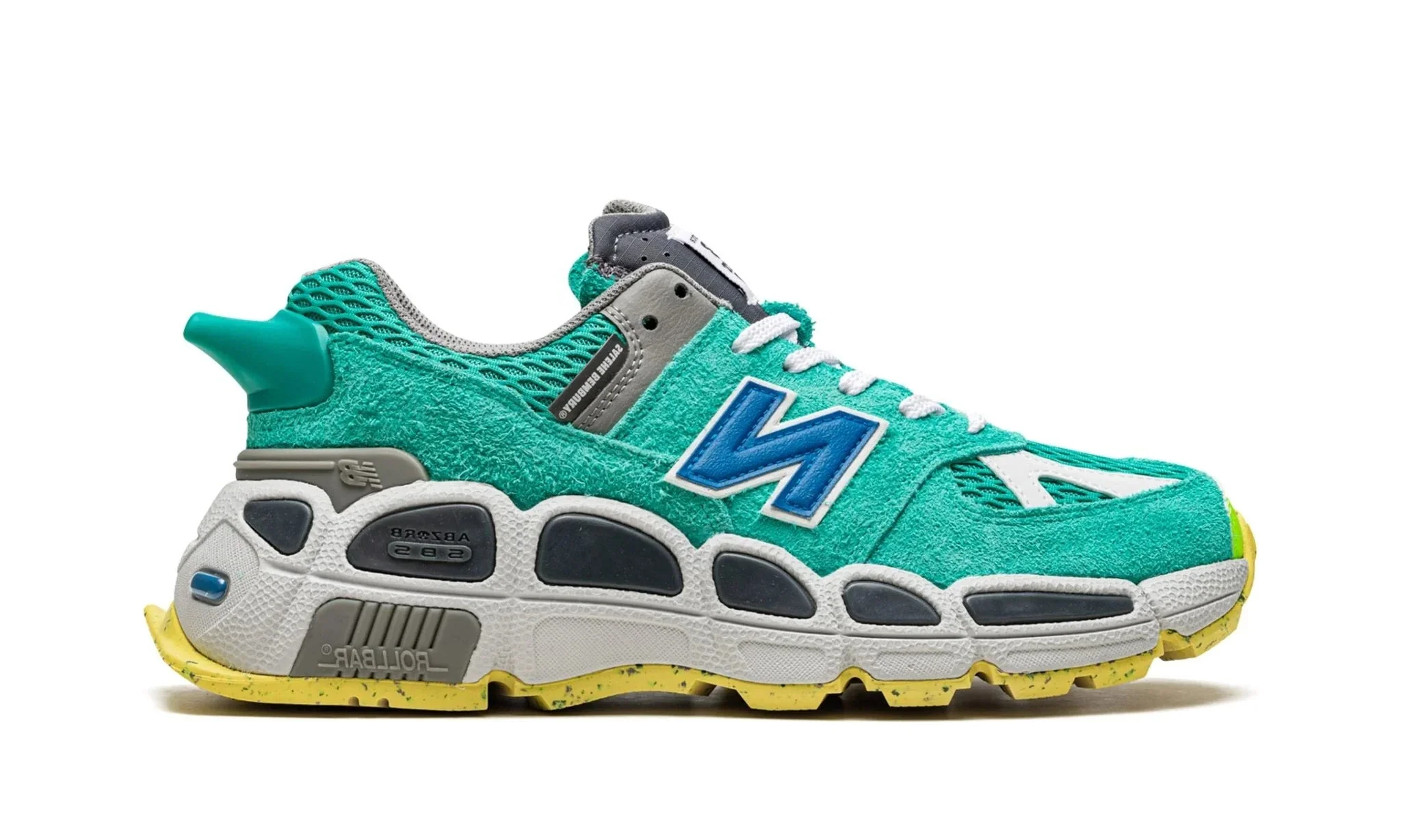 La Salehe Bembury x New Balance 574 Yurt « Emerald Sky » est l’un des nombreux coloris de la collection de chaussures d’inspiration outdoor créée par Salehe Bembury. Sortie en avril 2022, la « Emerald Sky » est l’un des multiples coloris de la 574 Yurt créée par Bembury dans le cadre de sa célèbre collaboration avec New Balance. La chaussure est un remodelage complet de la silhouette emblématique 574 de New Balance, puisqu’elle adopte un look outdoor avec un sifflet unique sur le talon qui promeut la sécurité et la survie lors des randonnées. La base de la chaussure est construite en mesh de couleur Emerald Sky. Des superpositions de daim poilu ton sur ton apparaissent sur la pointe, le milieu de la chaussure, le col et le talon. Un logo « N » réfléchissant se trouve de chaque côté de la chaussure. Dans l’ensemble, le look combine des éléments de l’héritage des chaussures New Balance avec un style contemporain. La New Balance 574 a été introduite à l’origine comme chaussure de trail running dans les années 1980, et la version de Salehe Bembury sur le modèle s’inspire sans aucun doute de son objectif initial.