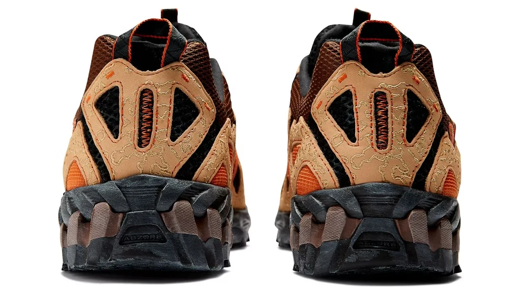 Le motif camouflage signé Joe Freshgoods s’invite subtilement sur certains panneaux, renforçant l’ADN « hiking urbain » de la paire.