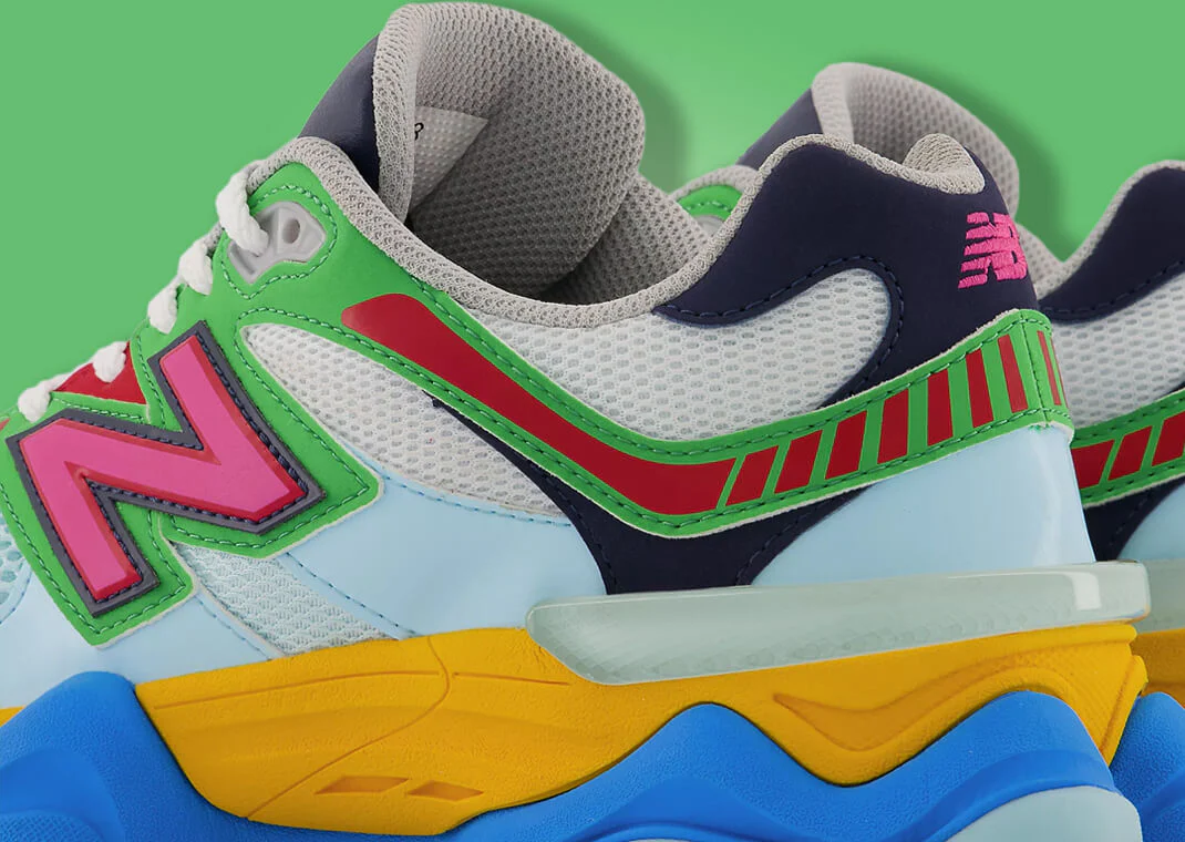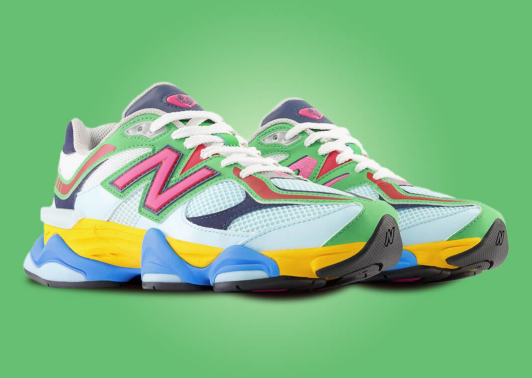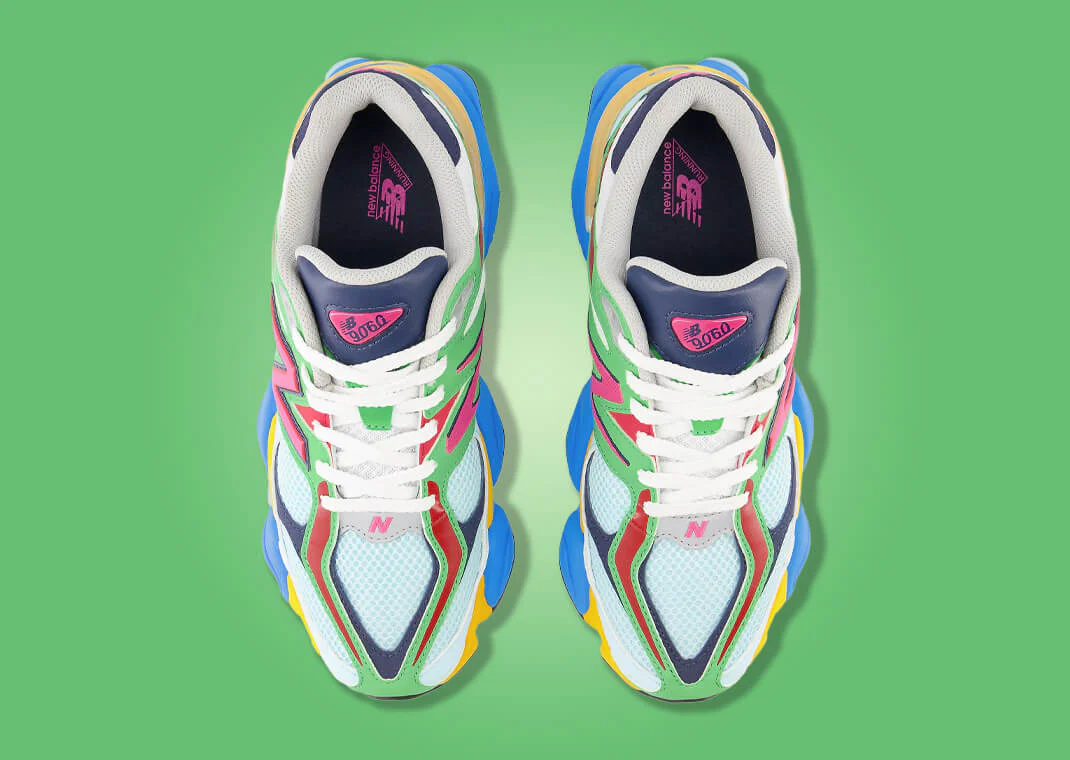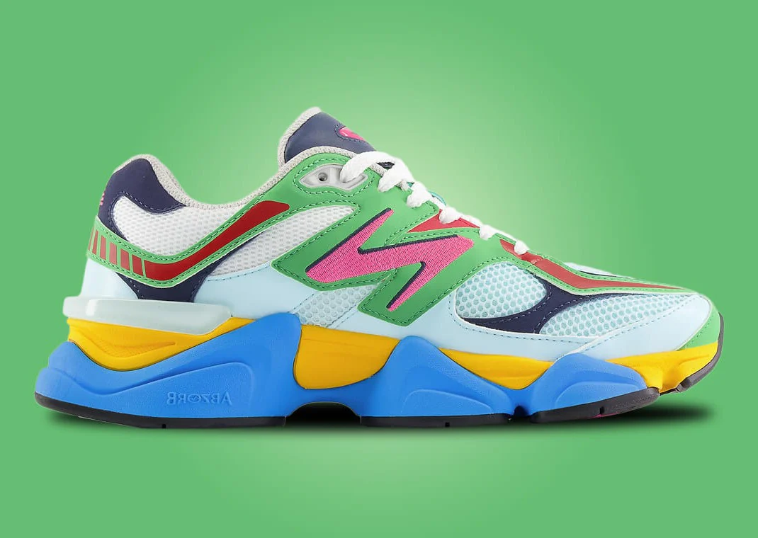 La New Balance 9060 Beach Glass Pink incarne l’audace chromatique et le confort premium d’une silhouette inspirée des runs des années 2000. Dotée du code SKU U9060NBN, cette variante multicolore joue une palette subtilement flashy où se mêlent un mesh bleu clair “Beach Glass”, des empiècements en suède et cuir vert menthe et rose fuchsia, et des touches rouge vif en accent.