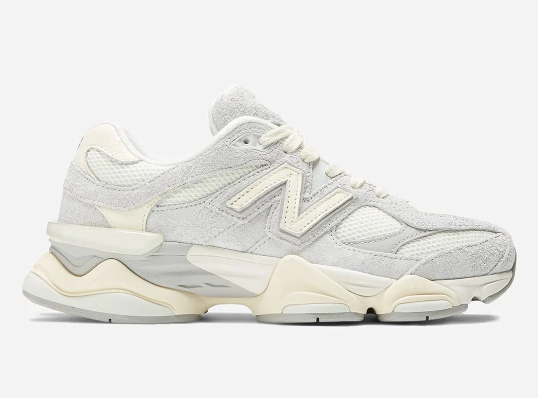 La New Balance 9060 Quartz Grey revisite la silhouette emblématique de la gamme 9060 avec une palette sobre et raffinée. Donc équipée du code SKU U9060HSA, cette version associe une base en mesh blanc cassé à des empiècements en daim gris (“Quartz Grey”) pour un effet texturé et premium.