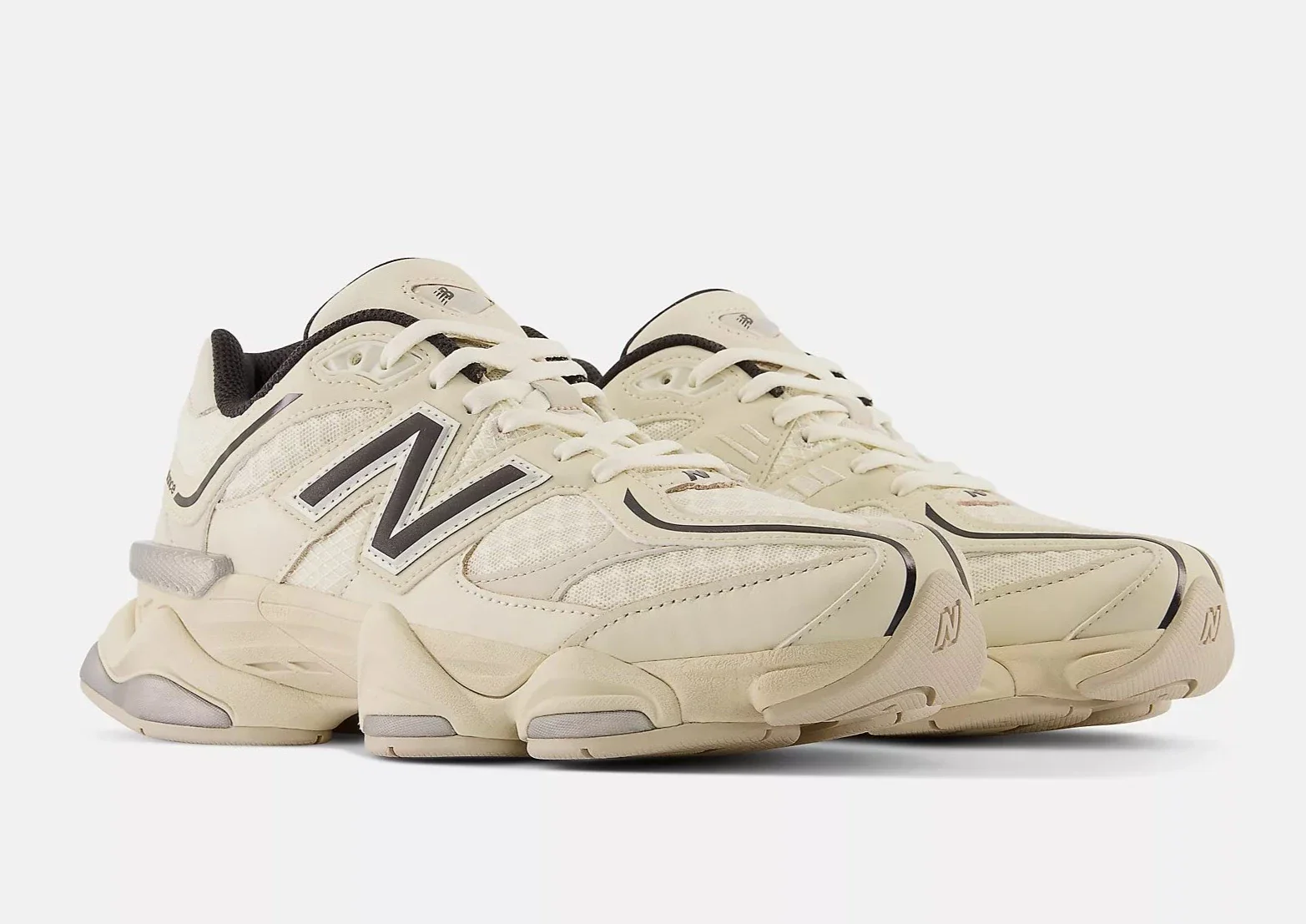 La New Balance 9060 Turtledove Black Silver Metallic s’impose comme une version haut de gamme et audacieuse de la silhouette 9060, avec une palette sophistiquée composée de tons “Turtledove” (beige/ivoire), de noir profond et de touches métalliques argentées.