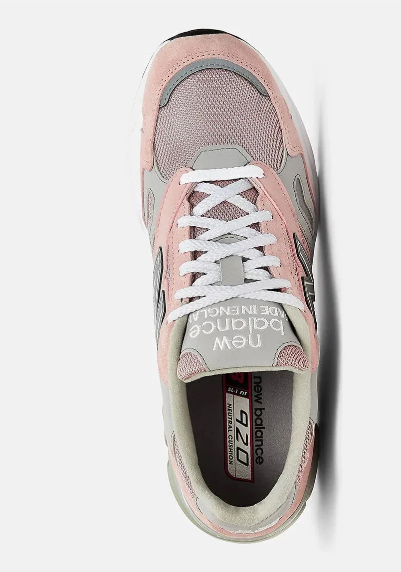 La New Balance 920 MiUK Pink Grey illustre à merveille le savoir-faire artisanal de l’usine de Flimby, en Angleterre, où tradition et innovation se rencontrent. Cette édition associe une palette raffinée de rose poudré et de gris acier, offrant un équilibre subtil entre élégance moderne et esprit rétro-running. Sa tige en mesh respirant gris clairest sublimée par des superpositions en daim premium rose, pour une texture veloutée et une allure délicatement contrastée. Véritable vitrine du travail de précision britannique, cette 920 intègre la technologie ENCAP pour une stabilité optimale, ainsi que la semelle intermédiaire ABZORB assurant un amorti fluide et réactif. Entre heritage européen, finesse des matériaux et confort supérieur, la 920 Pink Grey s’impose comme une sneaker élégante, distinctive et intemporelle.