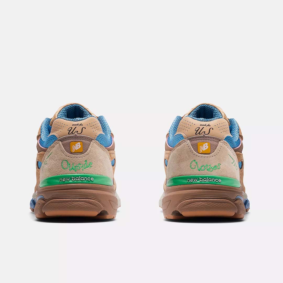 La New Balance 990v3 Joe Freshgoods “Outside Clothes” est une déclaration d’identité, de nostalgie et de style, signée par le créateur de Chicago Joe Freshgoods. Inspirée par les souvenirs d’enfance passés dehors, cette édition Made in USA célèbre la liberté et la créativité de la jeunesse urbaine. Sa palette terreuse et vibrante mêle bleu ciel, brun terre et accents turquoise, évoquant le ciel d’été et les trottoirs ensoleillés. La tige en mesh respirant est enveloppée de superpositions en daim premium texturé, tandis que la semelle ENCAP et la technologie ABZORB garantissent un amorti réactif et un confort durable. Le logo “JFG” et les détails brodés signent une collaboration sincère et inspirante, où souvenir, couleur et culture s’entremêlent avec justesse.