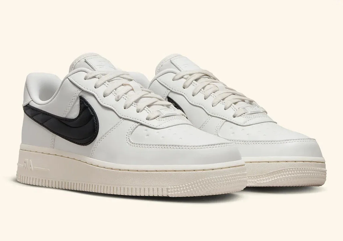 La Nike Air Force 1 ’07 Quilted Swoosh Phantom Black revisite la silhouette iconique avec une approche premium mêlant minimalisme et sophistication. Sa tige en cuir Phantom, un blanc cassé élégant et légèrement chaud, apporte une base lumineuse et raffinée. Le détail signature de cette édition : le Swoosh matelassé, délicatement rembourré et texturé, présenté dans un noir profond qui contraste avec puissance et élégance.