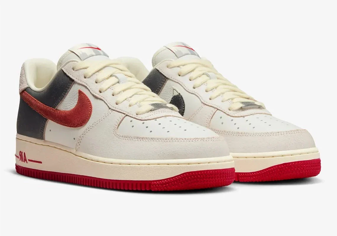 La Nike Air Force 1 Low ’07 Premium “Chicago” (2023) rend hommage à l’héritage sportif et culturel de la Windy City à travers une silhouette élégante et chargée de détails premium. Sa tige en cuir grainé blanc, d’une qualité supérieure, est sublimée par des accents rouge varsity et noir profond, reprenant la palette emblématique de Chicago et de son univers basketball légendaire.