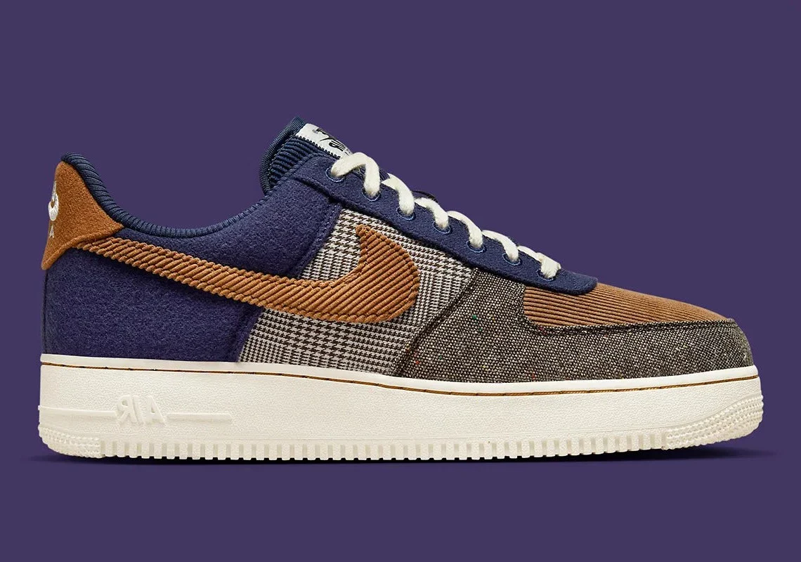 ALa Nike Air Force 1 Low ’07 PRM Tweed Midnight Navy Corduroy revisite l’icône de 1982 dans une version riche en textures, pensée comme une pièce premium au charme intemporel. Sa tige associe un tweed Midnight Navy profond, tissé avec finesse, à des empiècements en corduroy côtelé, créant un contraste élégant entre sophistication textile et esprit vintage. Le cuir lisse ton-sur-ton sur l’empeigne et le talon vient structurer l’ensemble tout en renforçant le caractère premium du modèle.
