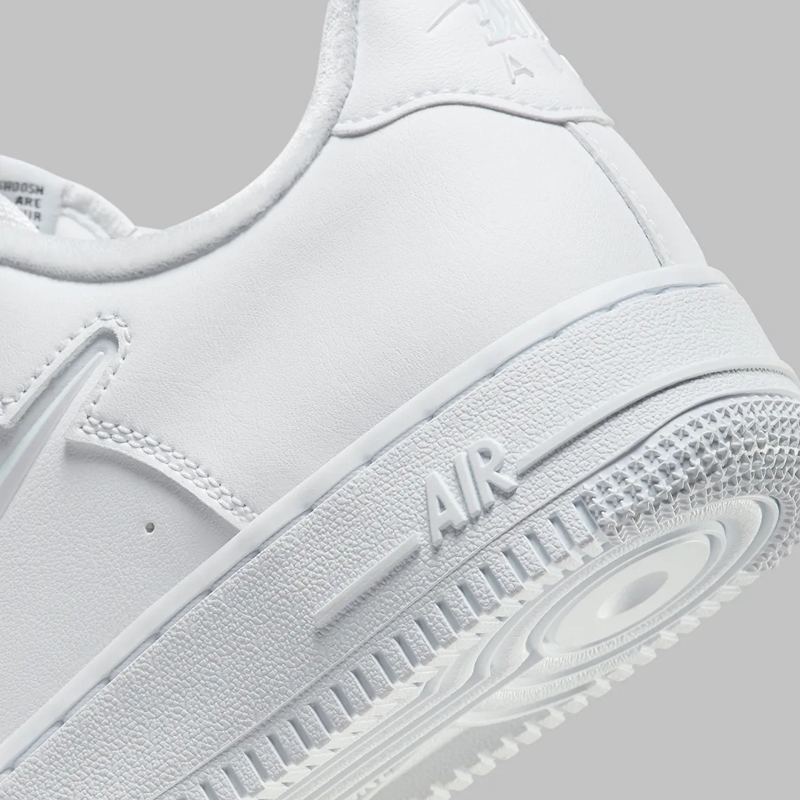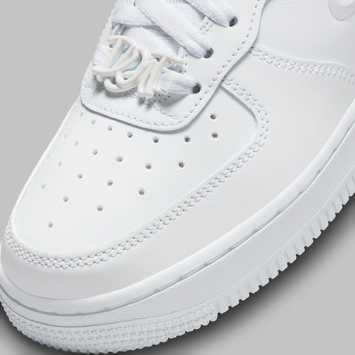 On retrouve des patchs JDI, des marquages minimalistes et parfois des finitions texturées qui apportent profondeur et caractère à cette édition spéciale. Le swoosh, les lacets, la semelle et les coutures restent parfaitement blancs, soulignant le côté premium et ultra-versatile du modèle.