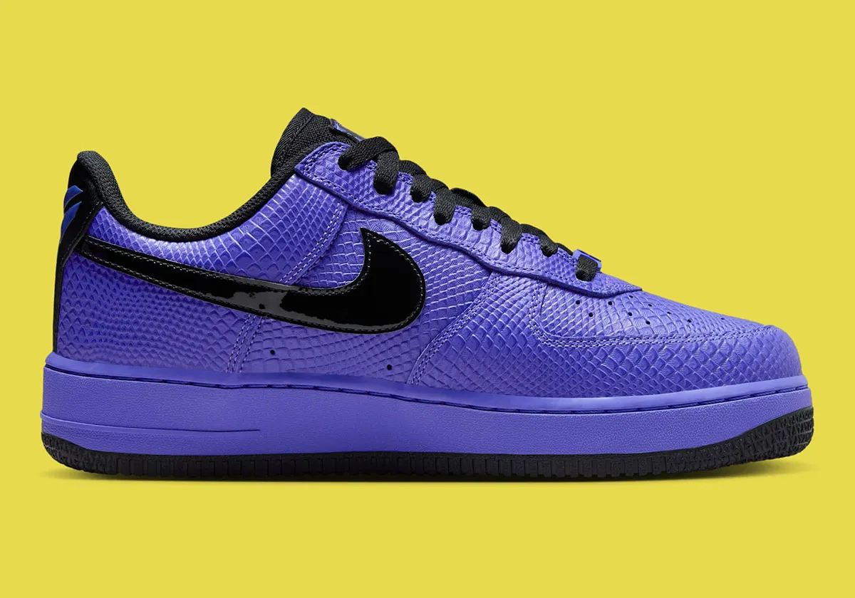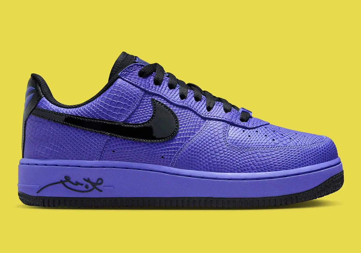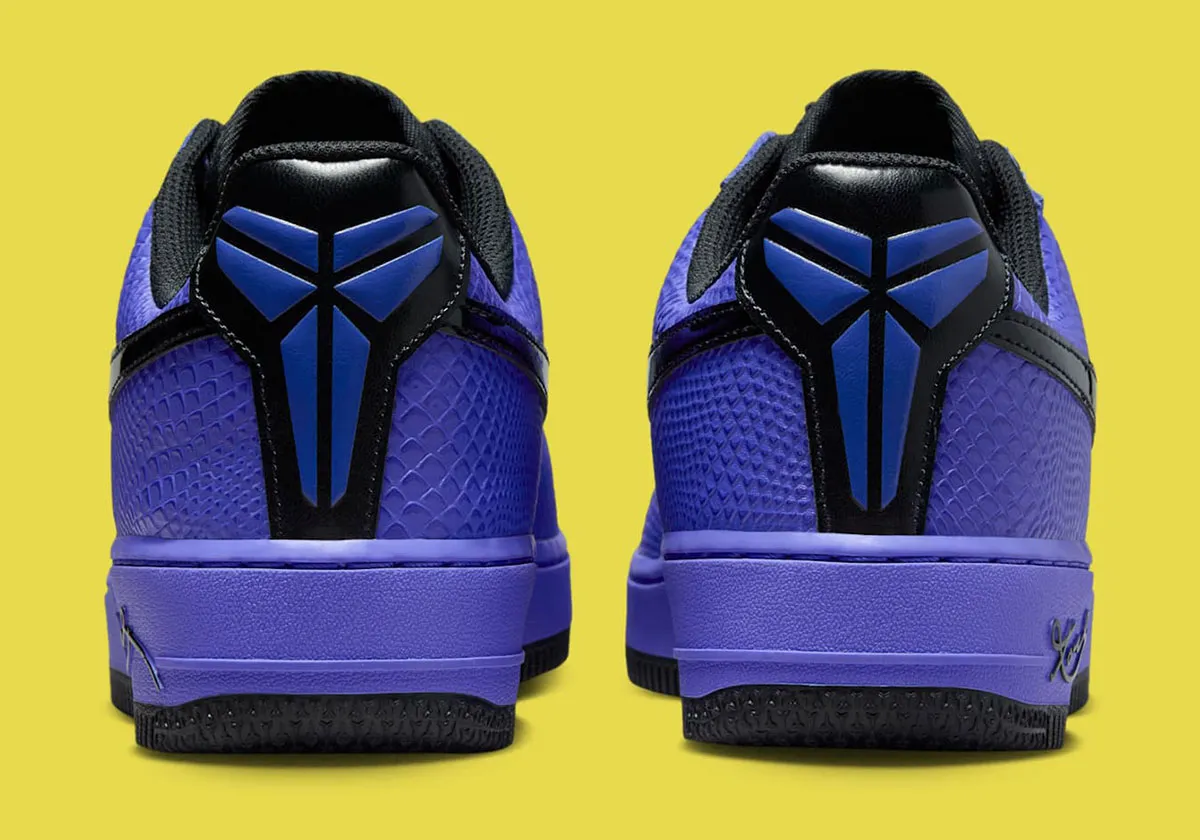 Habillée d’un cuir premium texturé façon peau de serpent violet — clin d’œil à l’emblématique Black Mamba — cette sneaker se pare de Swooshes noirs en cuir verni et de détails signature du Barça sur la languette, la semelle intérieure et le dubrae. À l’arrière, le logo “Sheath” de Kobe et ses années de titre NBA gravées rappellent la grandeur du champion.