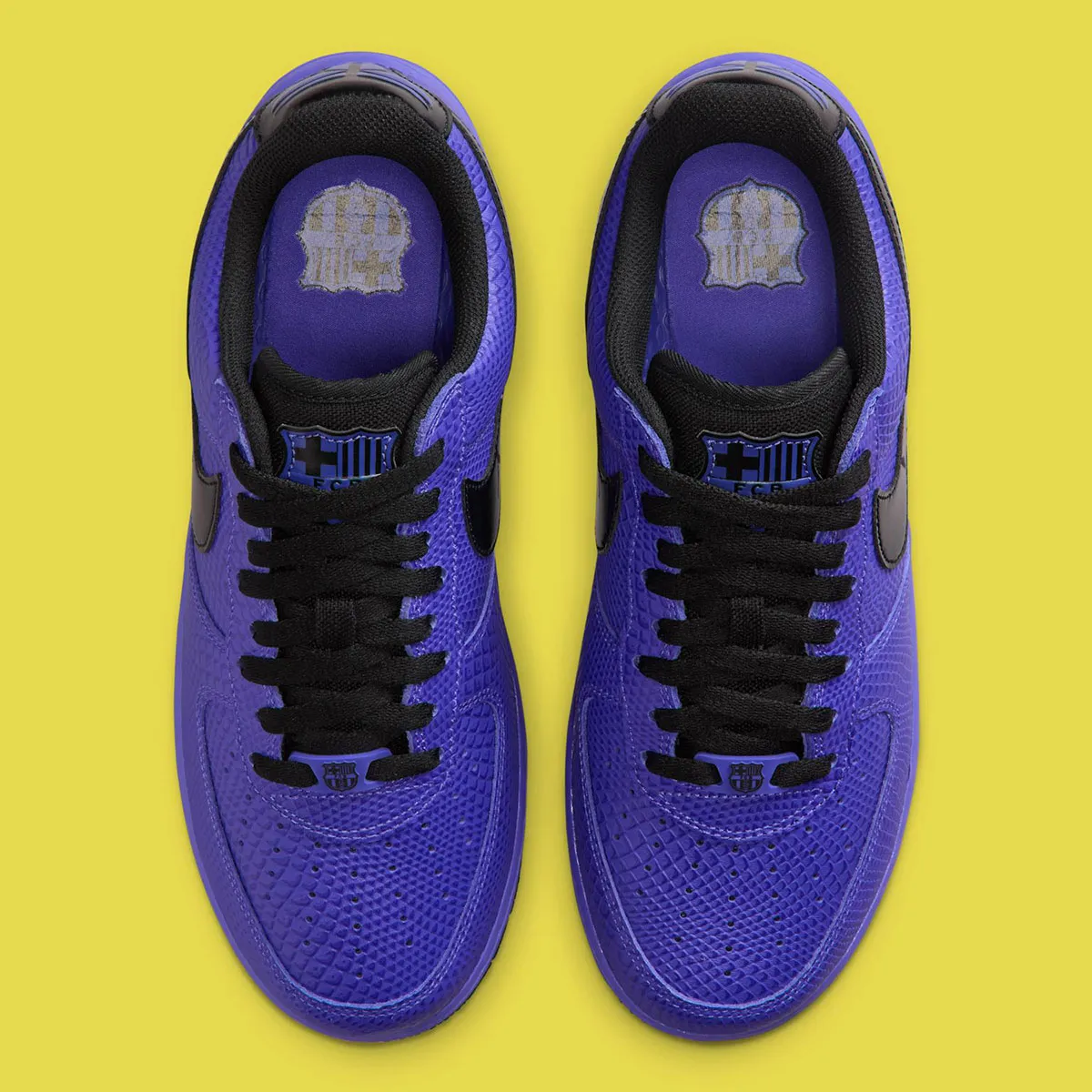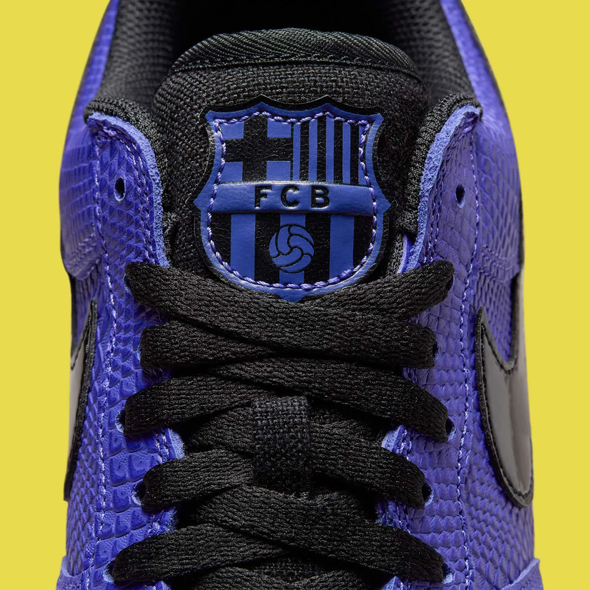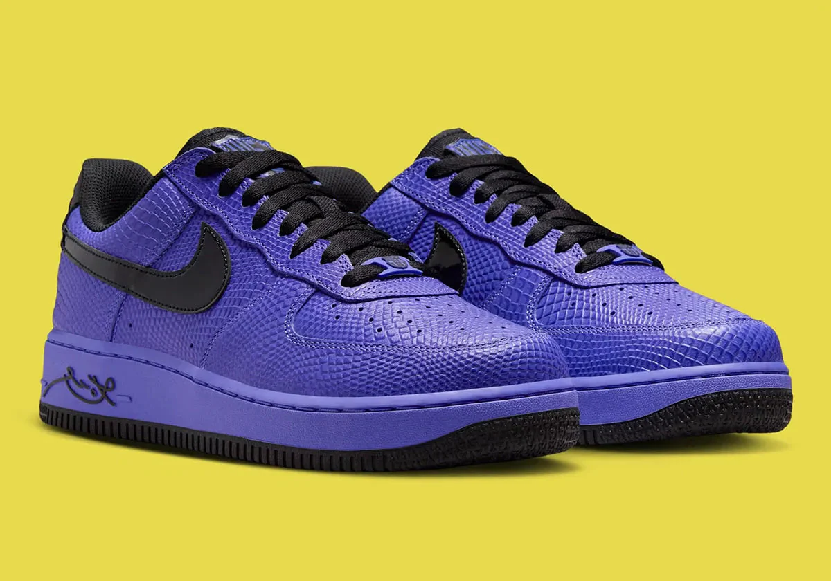 Habillée d’un cuir premium texturé façon peau de serpent violet — clin d’œil à l’emblématique Black Mamba — cette sneaker se pare de Swooshes noirs en cuir verni et de détails signature du Barça sur la languette, la semelle intérieure et le dubrae. À l’arrière, le logo “Sheath” de Kobe et ses années de titre NBA gravées rappellent la grandeur du champion.