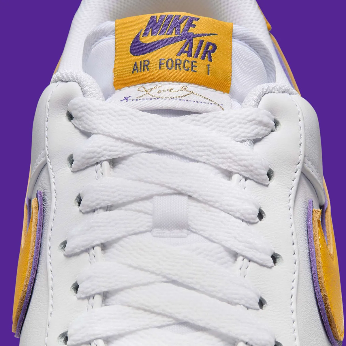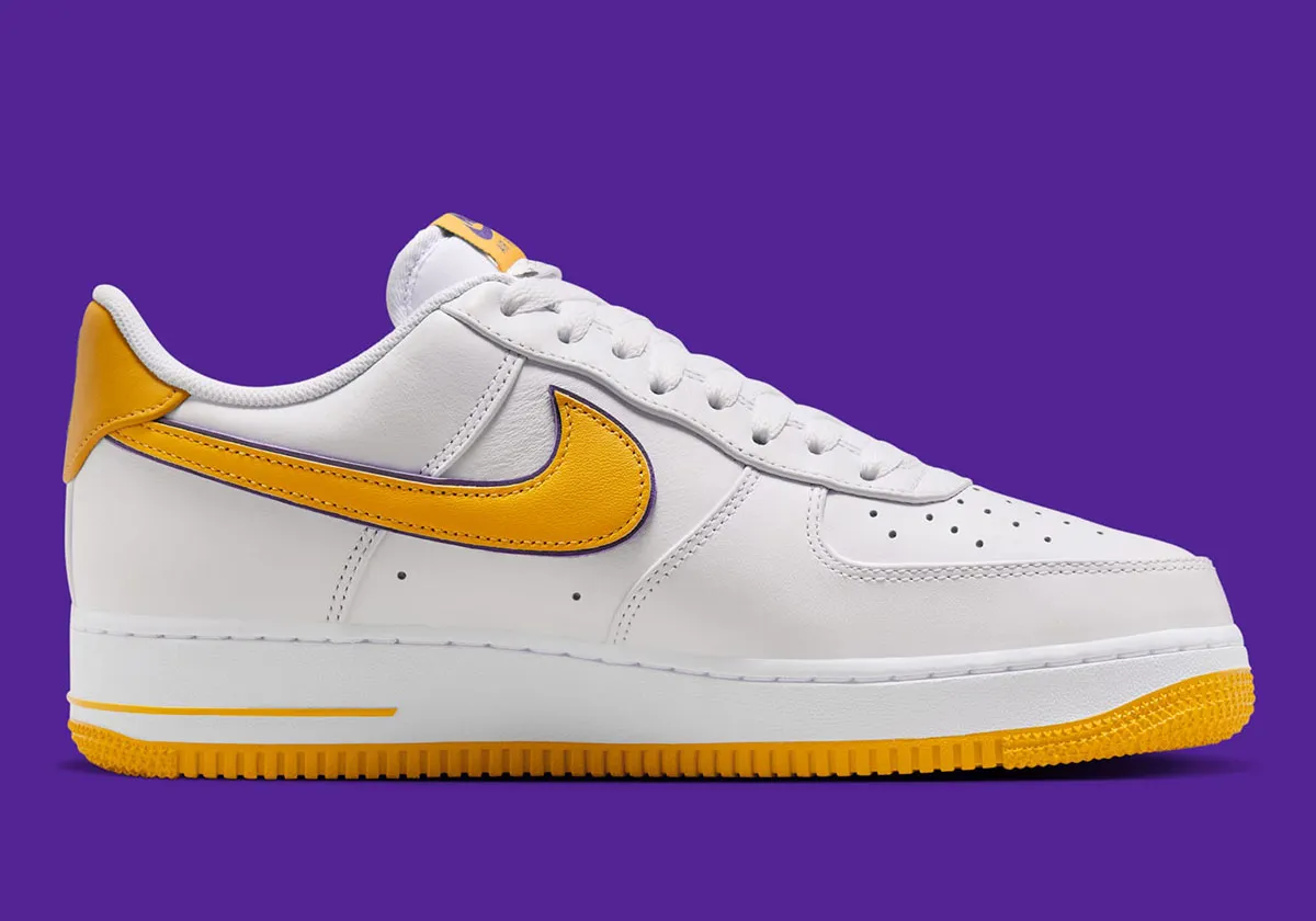 La Air Force 1 « Kobe Bryant » rend hommage au quintuple champion NBA et légende des Los Angeles Lakers. Ce modèle iconique arbore le schéma de couleurs des Lakers (un mélange distinctif de violet, or et blanc) qui célèbre l’héritage inoubliable de Kobe Bryant. Les logos Swoosh à double couche et l’insigne Kobe Bryant sous l’étiquette de la languette en nylon ajoutent une touche unique et personnalisée. Le numéro 8 brodé sur le talon rend hommage à une période marquante de la carrière de Kobe, tandis que le logo Kobe Sheath gravé en creux dans le cuir du talon symbolise l’intemporalité et la force de sa légende.
