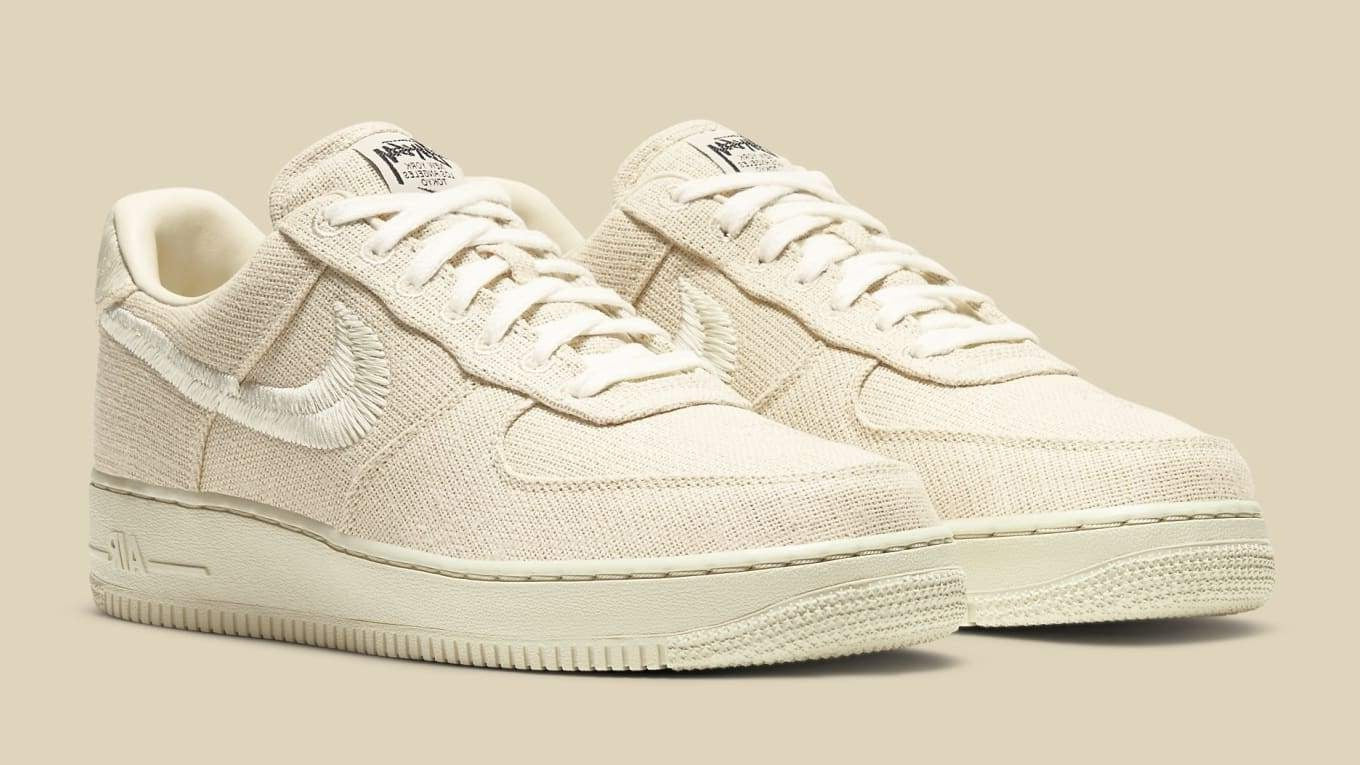 La Nike Air Force 1 Low Stüssy Fossil revisite la silhouette emblématique de 1982 dans une version textile premium, minimaliste et profondément raffinée, pensée en collaboration avec le label californien Stüssy. Sa tige en canvas tissé couleur Fossil, une teinte beige sable chaleureuse, apporte un rendu organique et texturé qui contraste avec les versions cuir traditionnelles. Les signatures Stüssy — le double S perforé sur la toebox, le logo brodé sur le talon et le branding métallique sur la languette — ajoutent une touche artisanale et discrète typique de la marque.