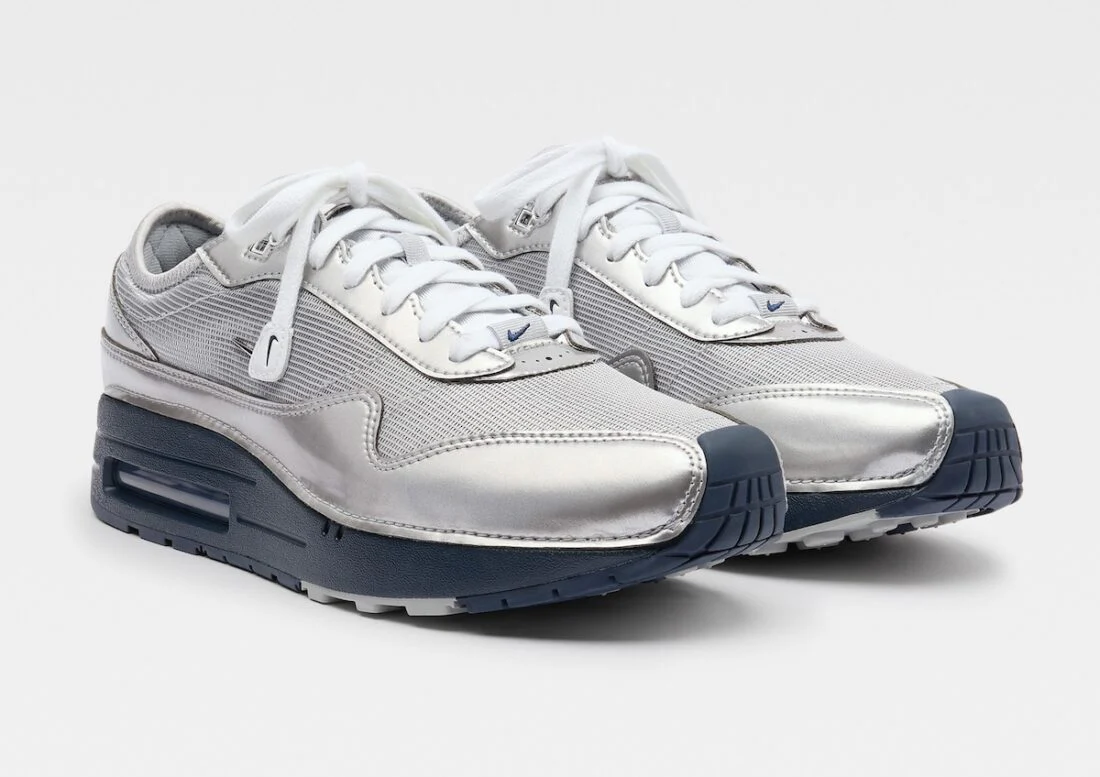 Parmi la collection du duo, voici la Jacquemus x Nike Air Max 1 ’86 Metallic Silver, le coloris préféré du créateur français.