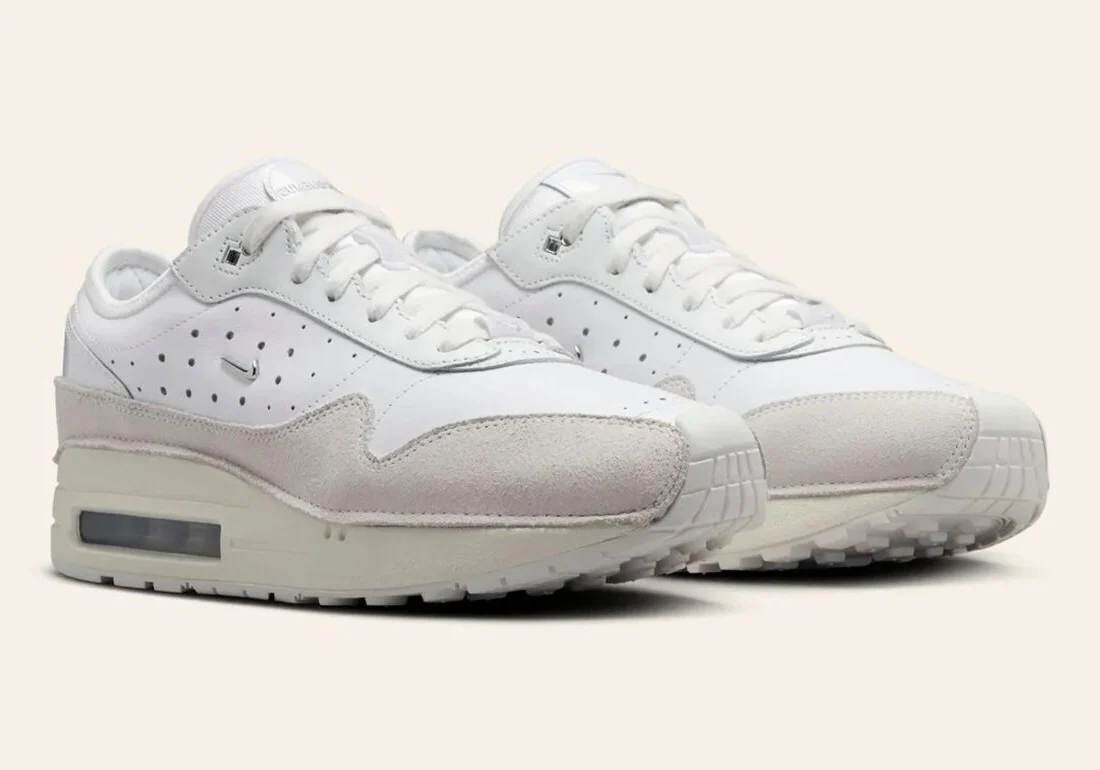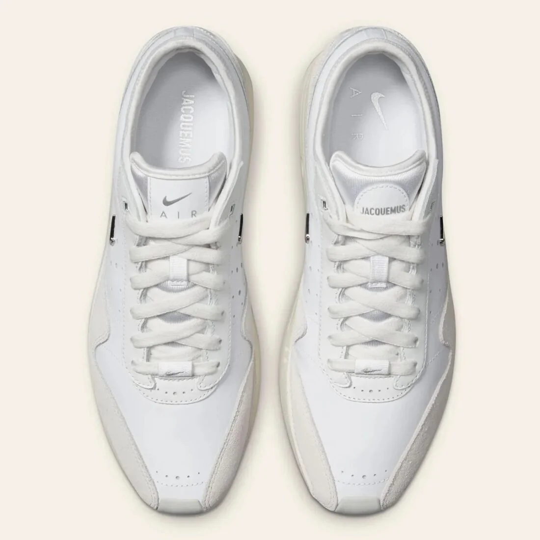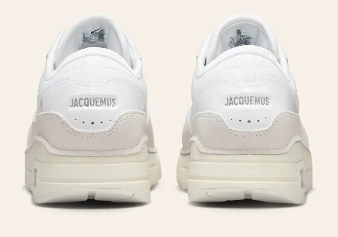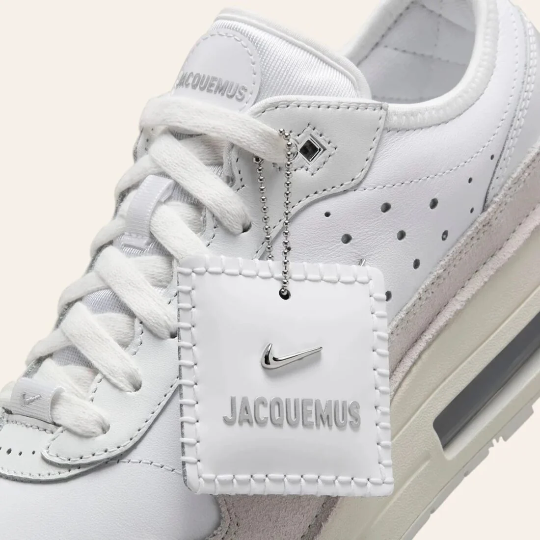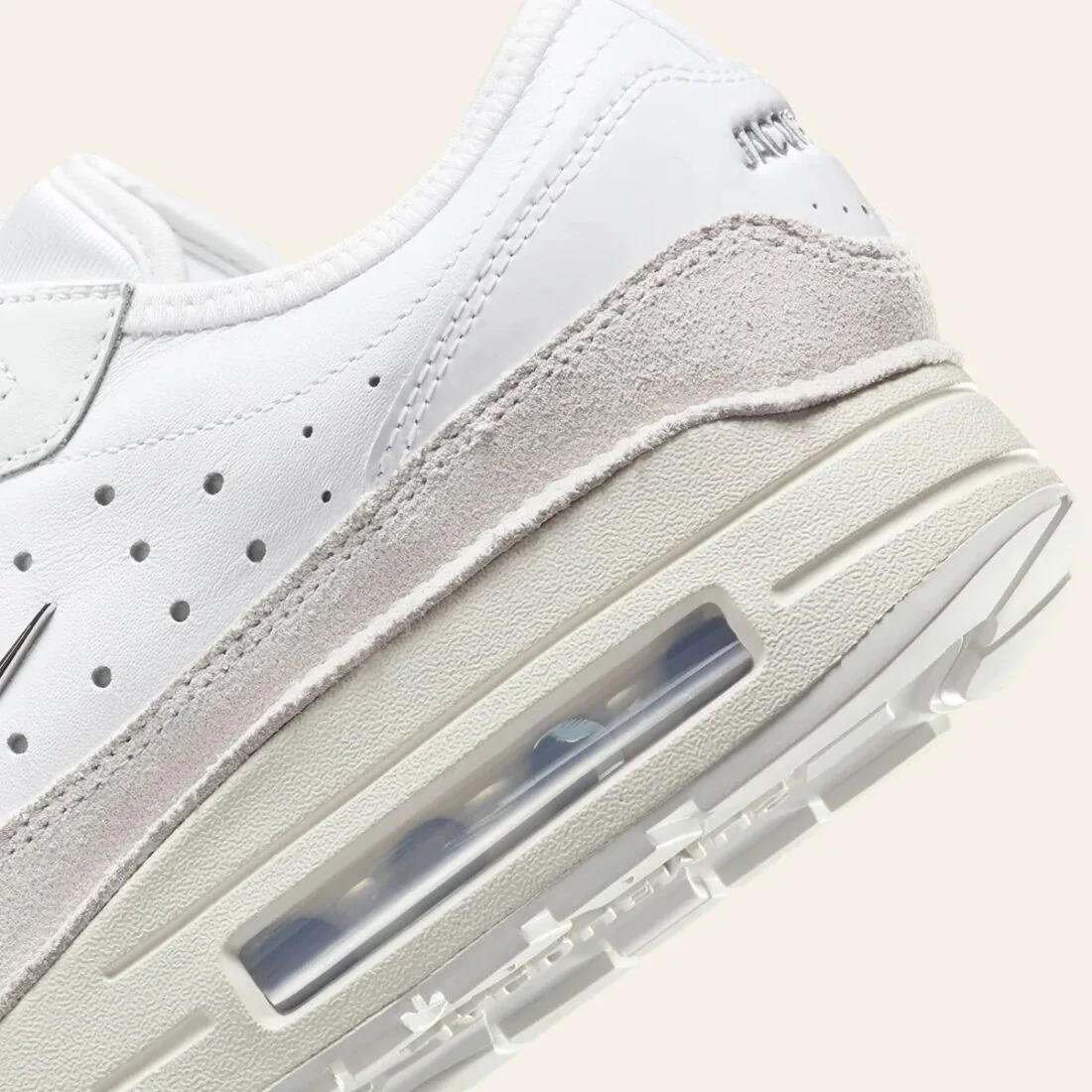 Les proportions OG sont conservées, incluant la mythique Big Bubble — la grande unité Air à l’avant — qui apporte une dimension rétro-futuriste parfaitement en accord avec l’ADN design de la collaboration. Les détails subtils, comme un mini-Swoosh métallique, des découpes précises et un branding Jacquemus délicatement intégré, ajoutent une touche de luxe discret.