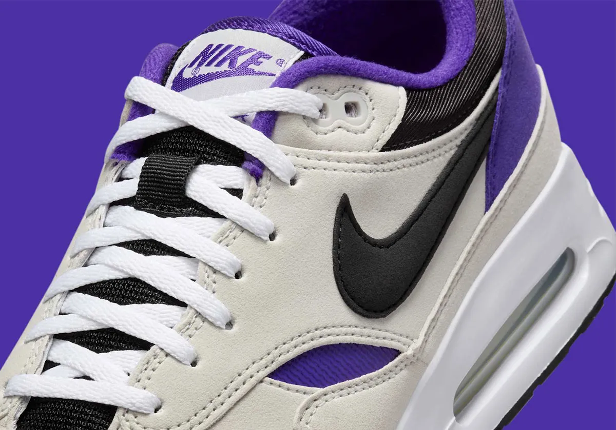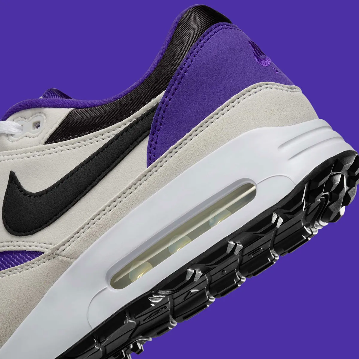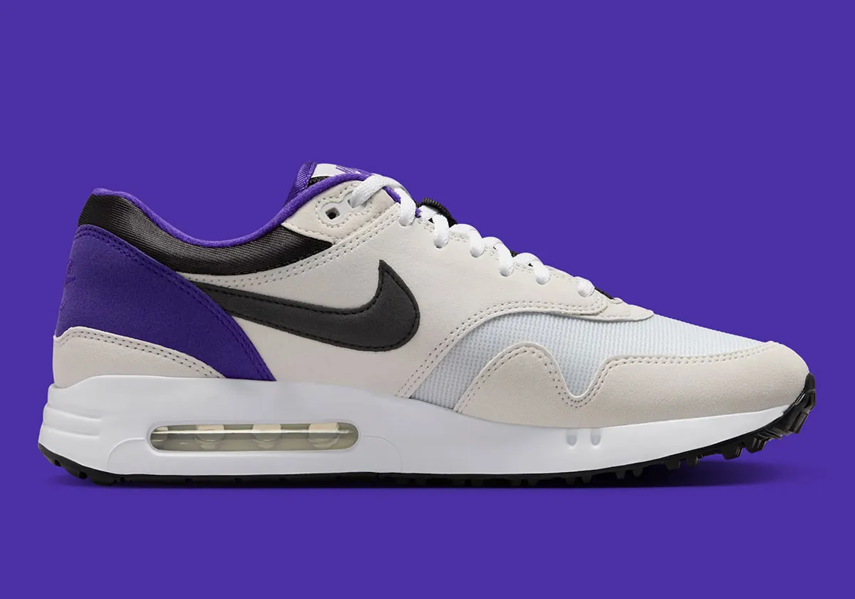 La Nike Air Max 1 ’86 OG Golf Big Bubble Purple Punch fusionne l’héritage running de l’Air Max originelle avec la technicité moderne du golf. Fidèle à la mythique version Big Bubble, elle reprend la grande unité Air avant, signature de l’édition 1986, tout en l’adaptant aux exigences du parcours. Sa tige combine un mesh blanc éclatant avec des empiècements en suede et cuir premium, sublimés par un Purple Punch vibrant appliqué sur le mudguard, le Swoosh et les accents de branding.