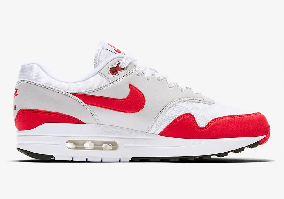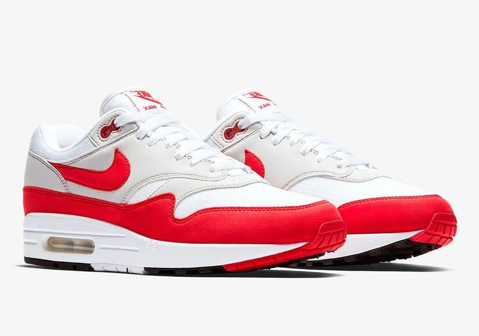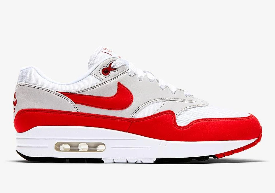 La célébration du 30e anniversaire de l’Air Max 1 se poursuit avec une nouvelle réédition de l’emblématique « Anniversaire » de l‘Air Max 1 dans le coloris OG Sport Red. Le designer Nike Tinker Hatfield a présenté au monde entier l’Air Max, avec la toute première unité aérienne visible, en 1987. Le colorway susmentionné et son homologue Sport Royal sont revenus début 2017 dans une version limitée pour célébrer la journée Air Max.