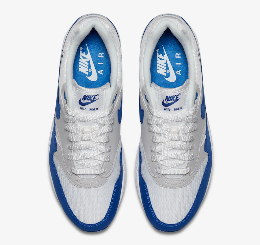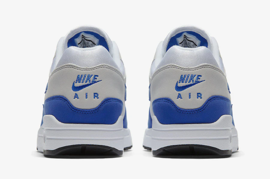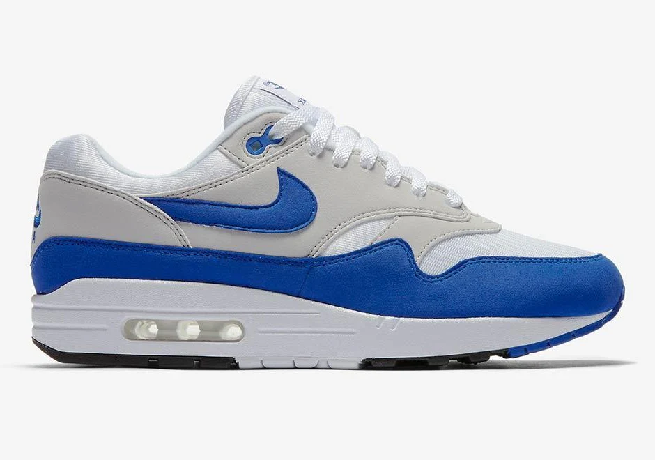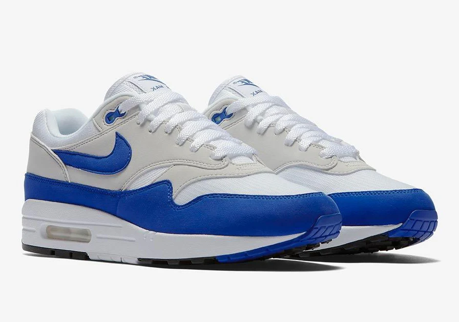 En l’honneur du 30e anniversaire de l’Air Max 1, la silhouette rétro est revenue dans les rayons des magasins en 2017 dans le coloris OG ‘Royal’. Le design utilise une tige en maille blanche, rehaussée de superpositions en daim gris neutre et de touches de bleu royal sur le Swoosh et le garde-boue. Une semelle intercalaire en mousse blanche est soutenue sous le pied par une semelle extérieure en caoutchouc tricolore.
