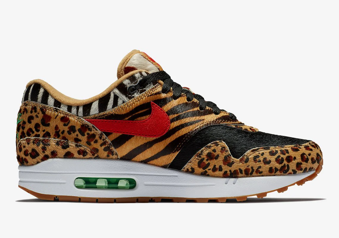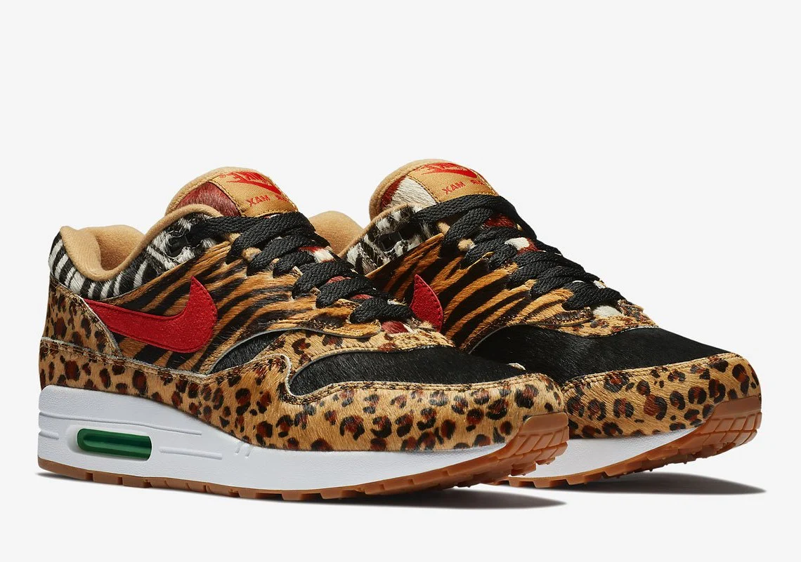 L’Atmos x Nike Air Max 1 « Animal » est revenu en 2018 pour une nouvelle promenade du côté sauvage. La basket faisait partie de l’ATMOS « Animal Pack 2.0 » avec l’Air Max 95. Cette Air Max 1 a été mise à jour avec des poils de poney noirs sur la boîte d’orteils, contrairement à la version originale « Animal » de 2006 qui comportait des poils de poney blancs. Le mélange exotique d’imprimés d’animaux combiné au rouge vif du Swoosh sur la partie supérieure texturée a fait de ce coloriage l’un des Air Max 1 les plus célèbres jamais réalisés et l’un des plus prisés par les collectionneurs de baskets.
